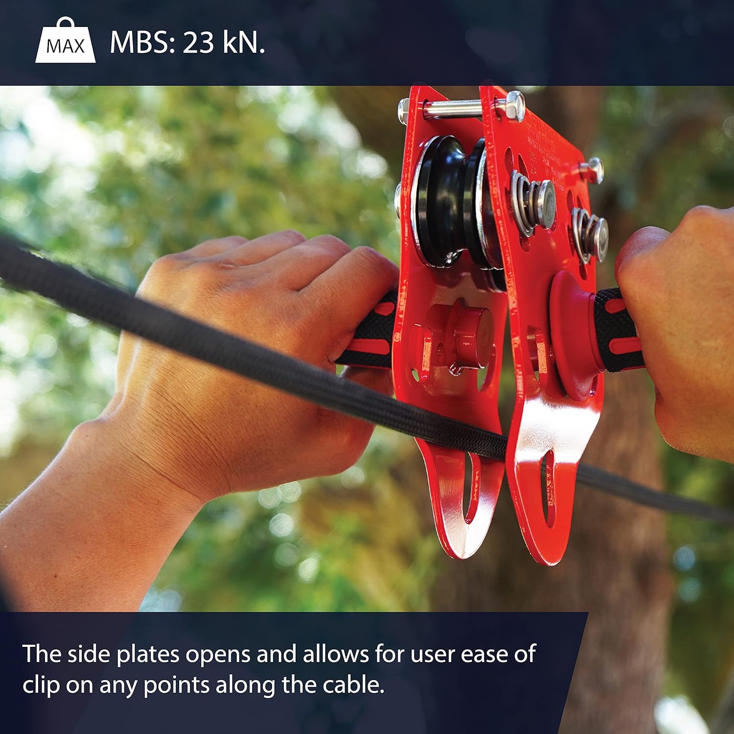- Rope-Friendly and High Efficiency: Compatible with cables ranging from 9mm to 13mm in size, this pulley's high efficiency of 90 M/S and 45 KN MBS make it the ideal choice for your thrilling ziplining experience. CE EN12278 Certified for added safety.