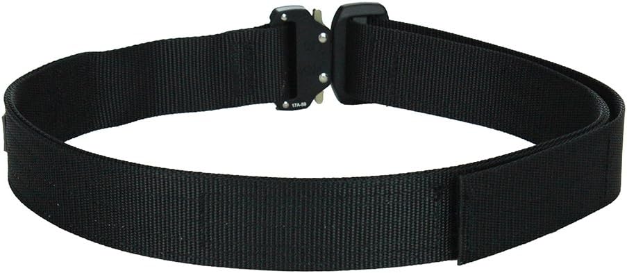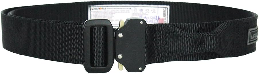Fusion Tactical Military Police Riggers Belt Generation II Type A Black Large 38-43"/1. 75" Wide- Features 2 layers of coated MIL-SPEC Type 13 webbing rated at 5, 000lbs- 5 rows of stitching that reinforce the belt's stiffness without compromising it's flexibility- Designed for riggers and considered a 2nd chance rappelling device- Equipped with 4000lb rated award-winning Raptor generation II quick-release aluminum buckle- Proudly made in USA