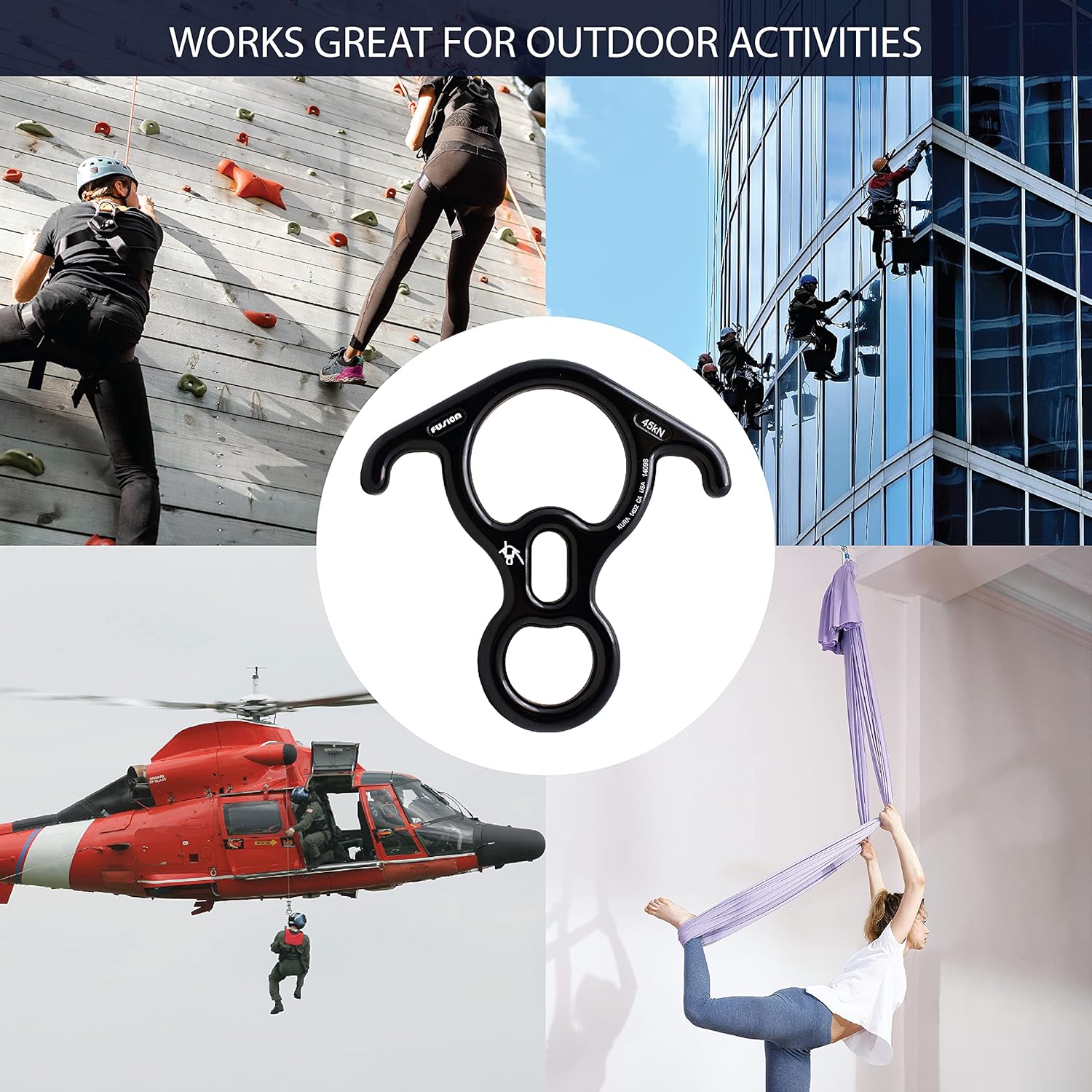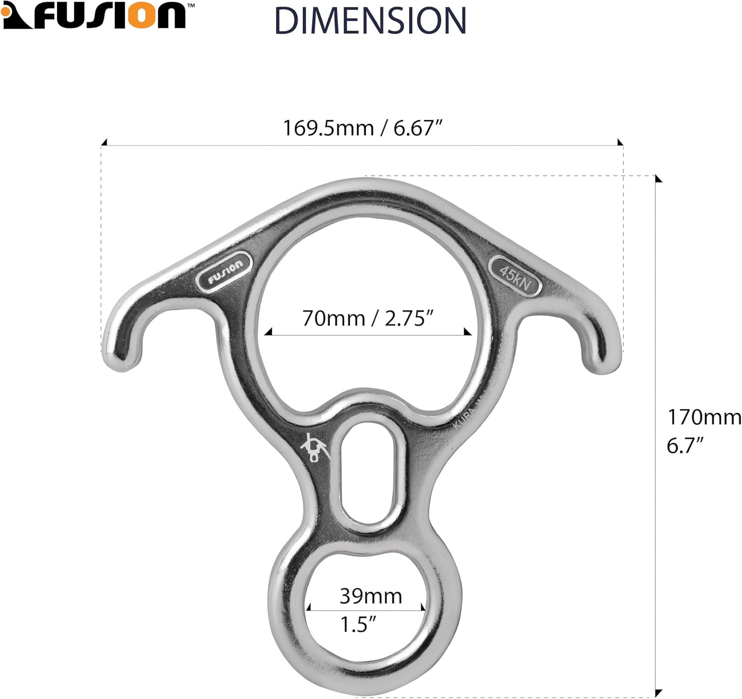 - Material: This Fusion Climb FP-8145 Kura 8 descender is made of a lightweight yet high strength aluminum, finished with an anodized process. The Anodizing finish increases the resistance to corrosion and wear, making for an exceptionally durable finish.