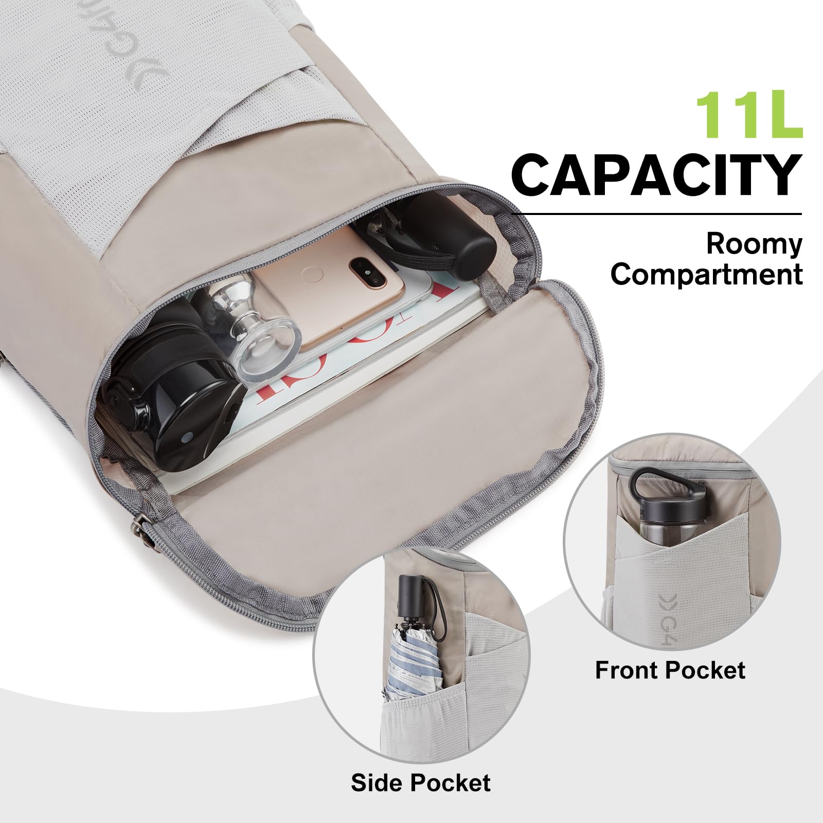 - 【Keep Things Organized】 This lightweight backpack capacity is 11L, wiht a roomy main compartment, a front mesh pocket, one hidden back zippered security pocket for valuable items and two side pockets for water bottles or umbrellas. Keep your belongings stay organized at all times!