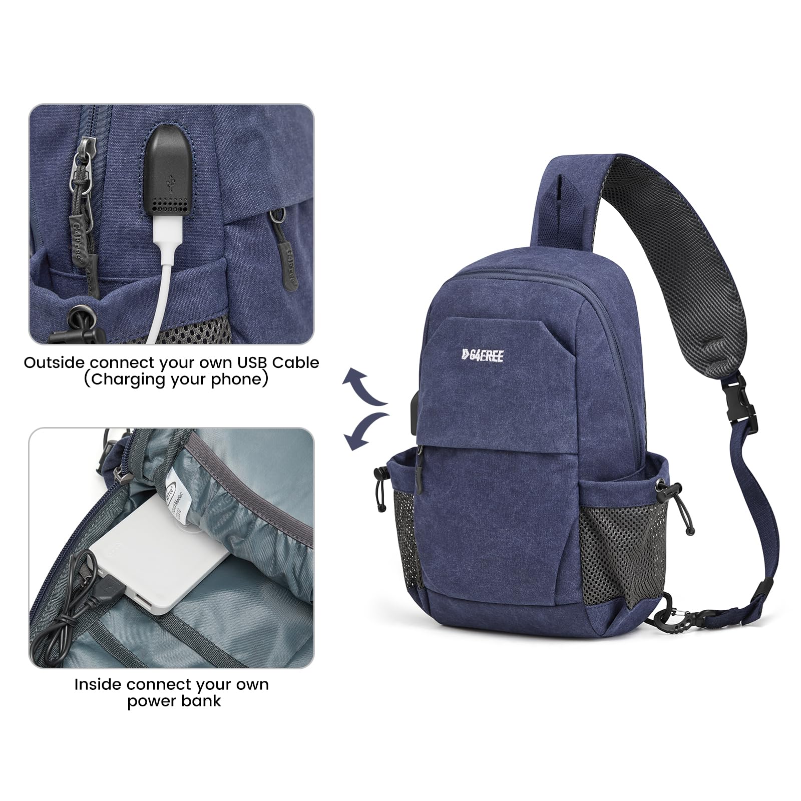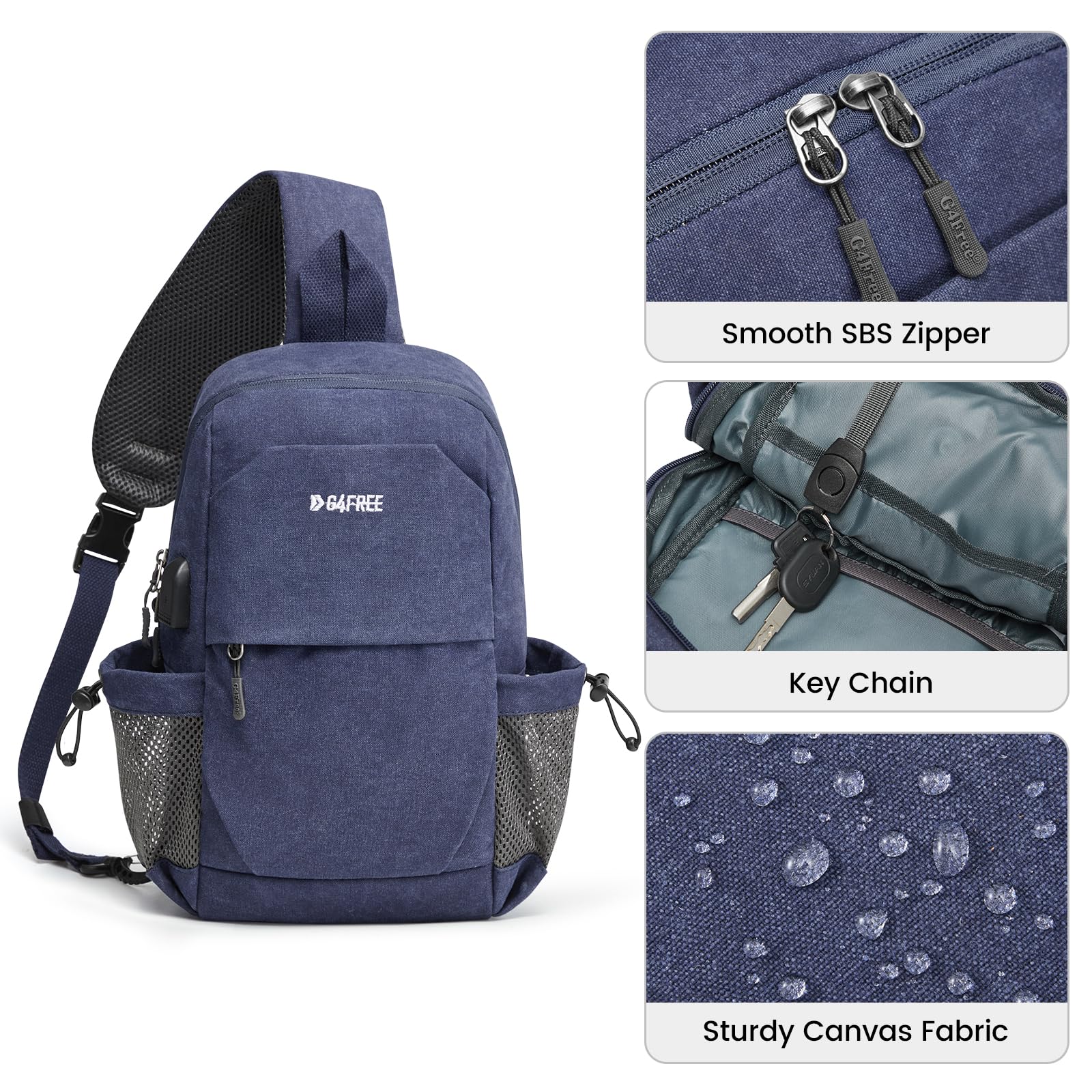 G4Free Canvas Sling Bag Crossbody Backpack Shoulder Bag for Men Women with Anti-theft Pocket & USB Charge Port (Dark Blue)