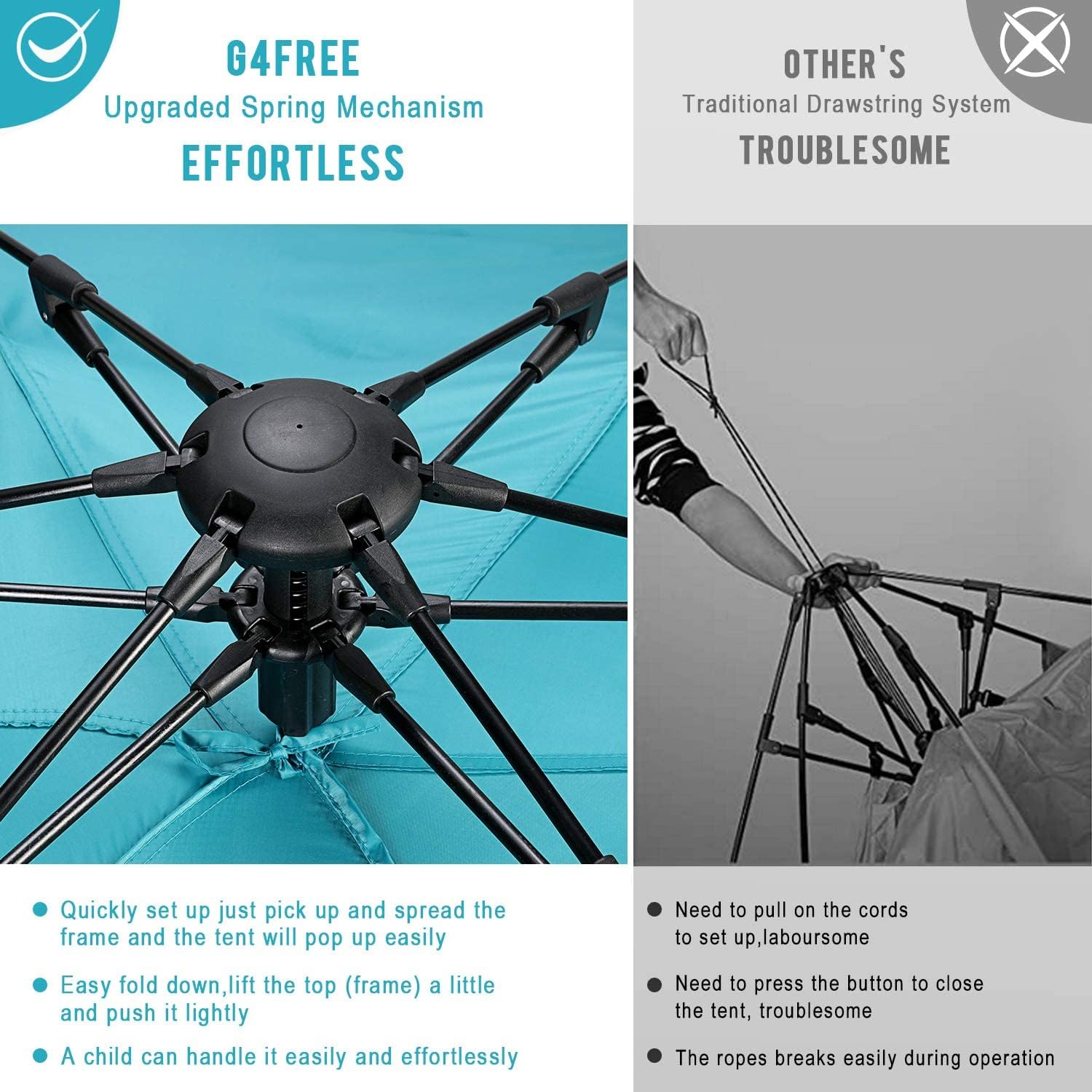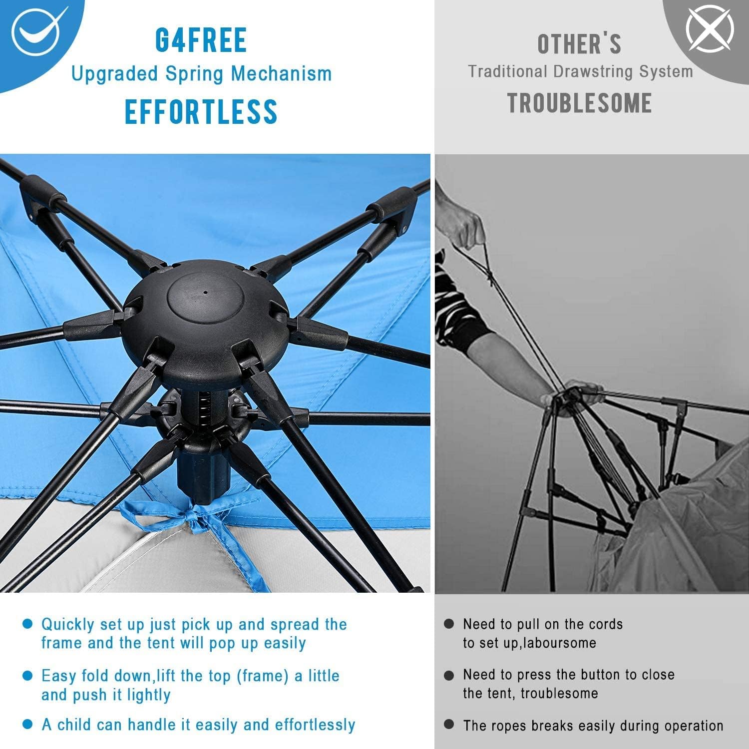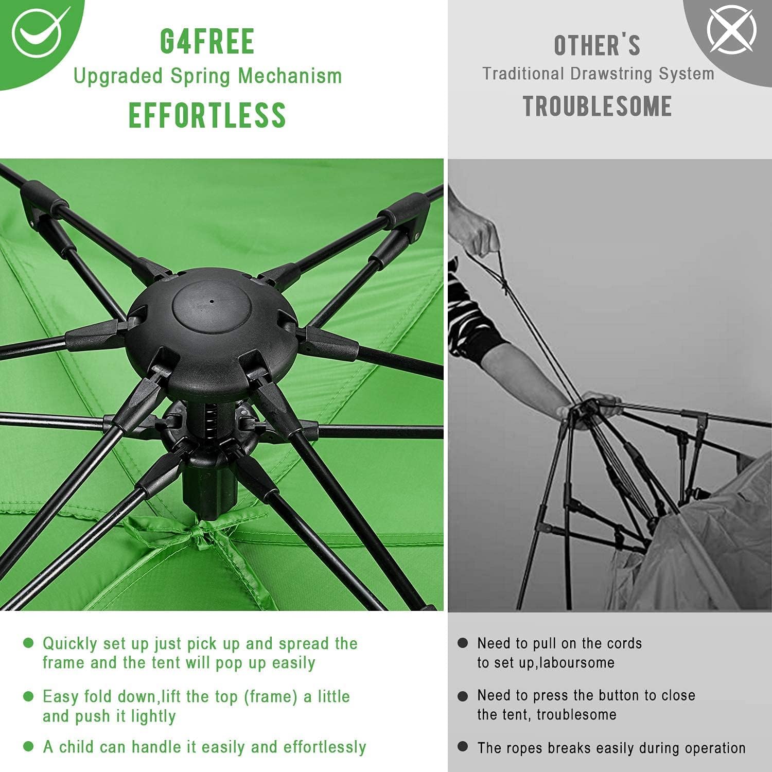 - 【Hub System Design for Easy Setup】With the new integration hub system, this beach tent can be easily set up or folded down, no need to struggle with this foldable beach sun shelter, no need to pull the string painfully. The instant pop-up beach tent is a great fit for your family's outdoor companion. Such as camping, hiking, picnic, fishing, and sporting events, and enjoy a good time with your family.