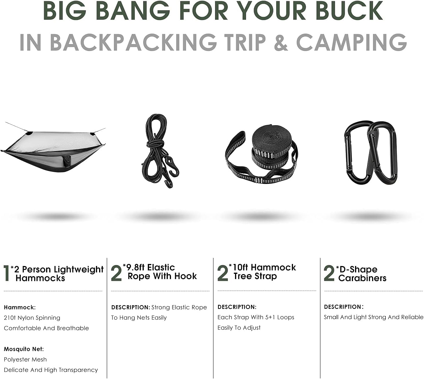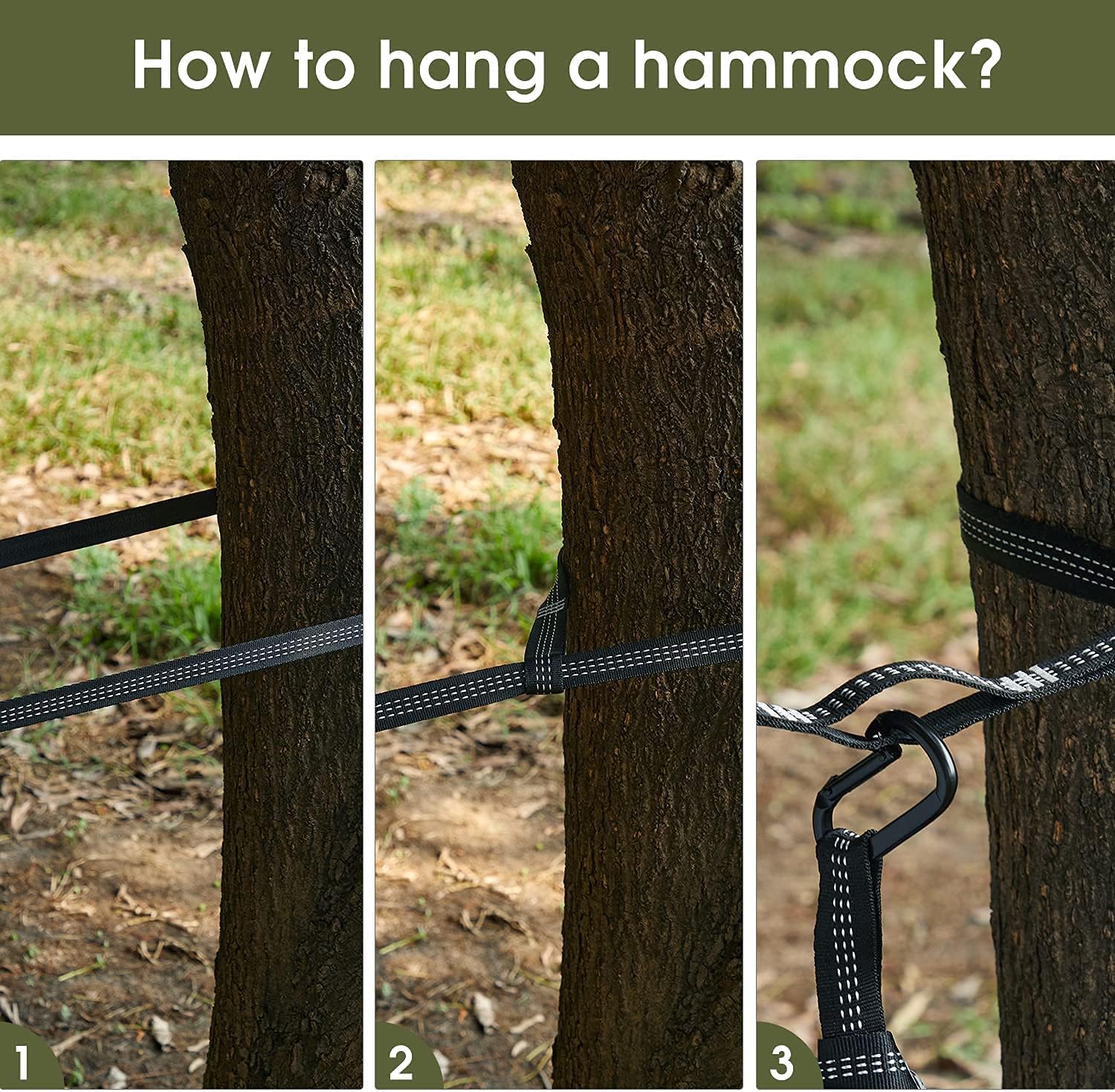 - Easy to Set Up:The Pop-up designed hammock help you to install easily. With the hardware thick tree strap and solid carabiner clips hanging on the tree, you can enjoy your leisure time at once. Zipper works smooth and well placed.