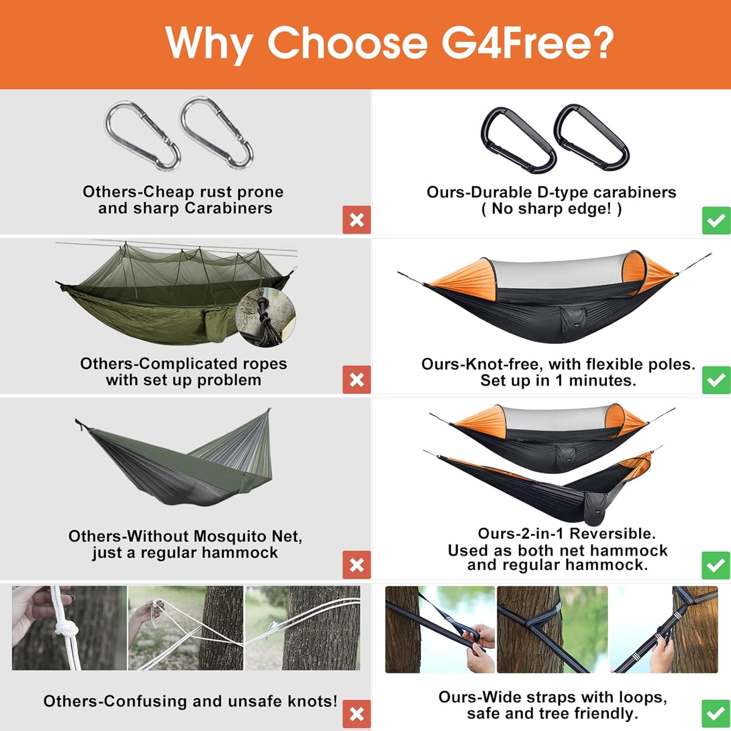 - Convert to a normal tree hammock: Just unzip the zipper, no need to take out pole, no damage, put the mosquito net into the inner pocket, then you get a regular tree hammock conveniently. 2 ways to use this Camping Hammock.