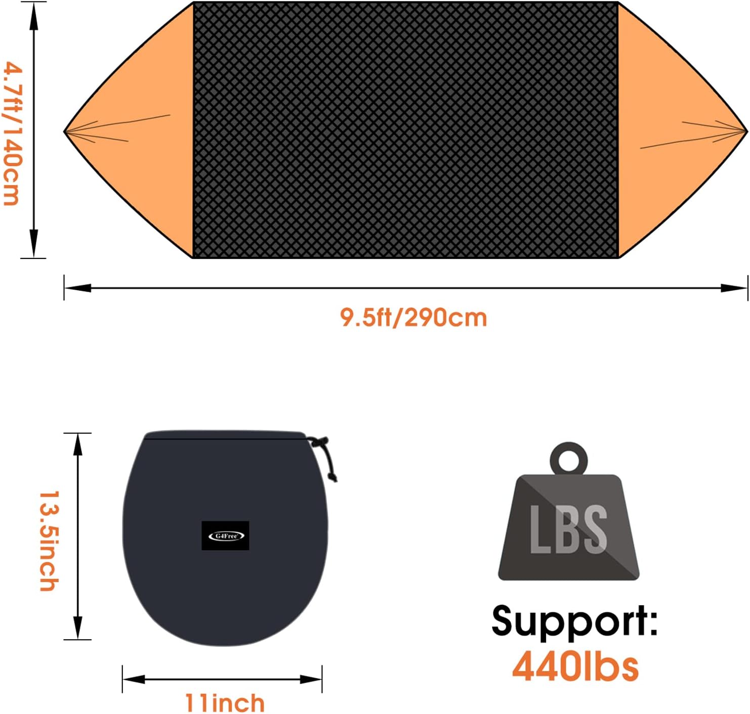 - Durable and Sturdy:The parachute hammock is made of 70D Nylon material, tear resistant, soft and comfortable to your skin. The maximum weight holding capacity is up to 440lbs. The hanging hammock is (LxW) 114 x 57inch / 9.5 x 4.7ft
