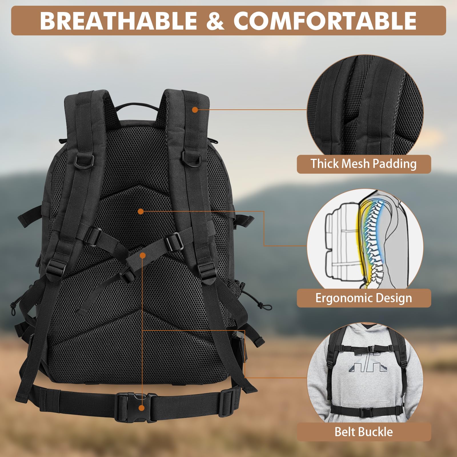 - 【MOLLE System】MOLLE webbing design allows for attachment of additional pouches and gear, perfect for a customizable 3-day pack or combat use.
