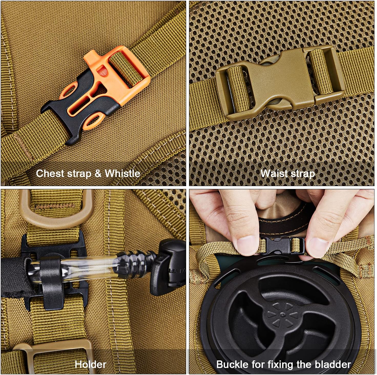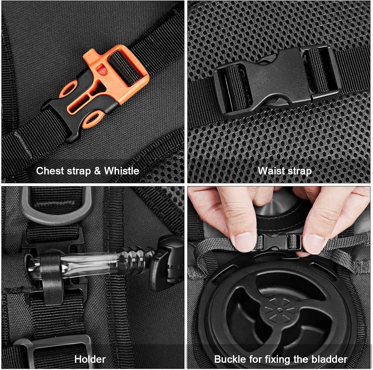 - 3L BPA FREE HYDRATION WATER BLADDER & HIGH-QUALITY MATERIAL --- tough and water-resistant high-density 600D polyester fabric, construction rope, high-quality buckle. 8.46"x9.45"x18.7" in size.