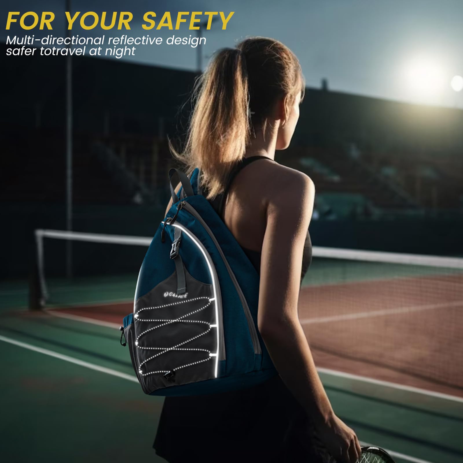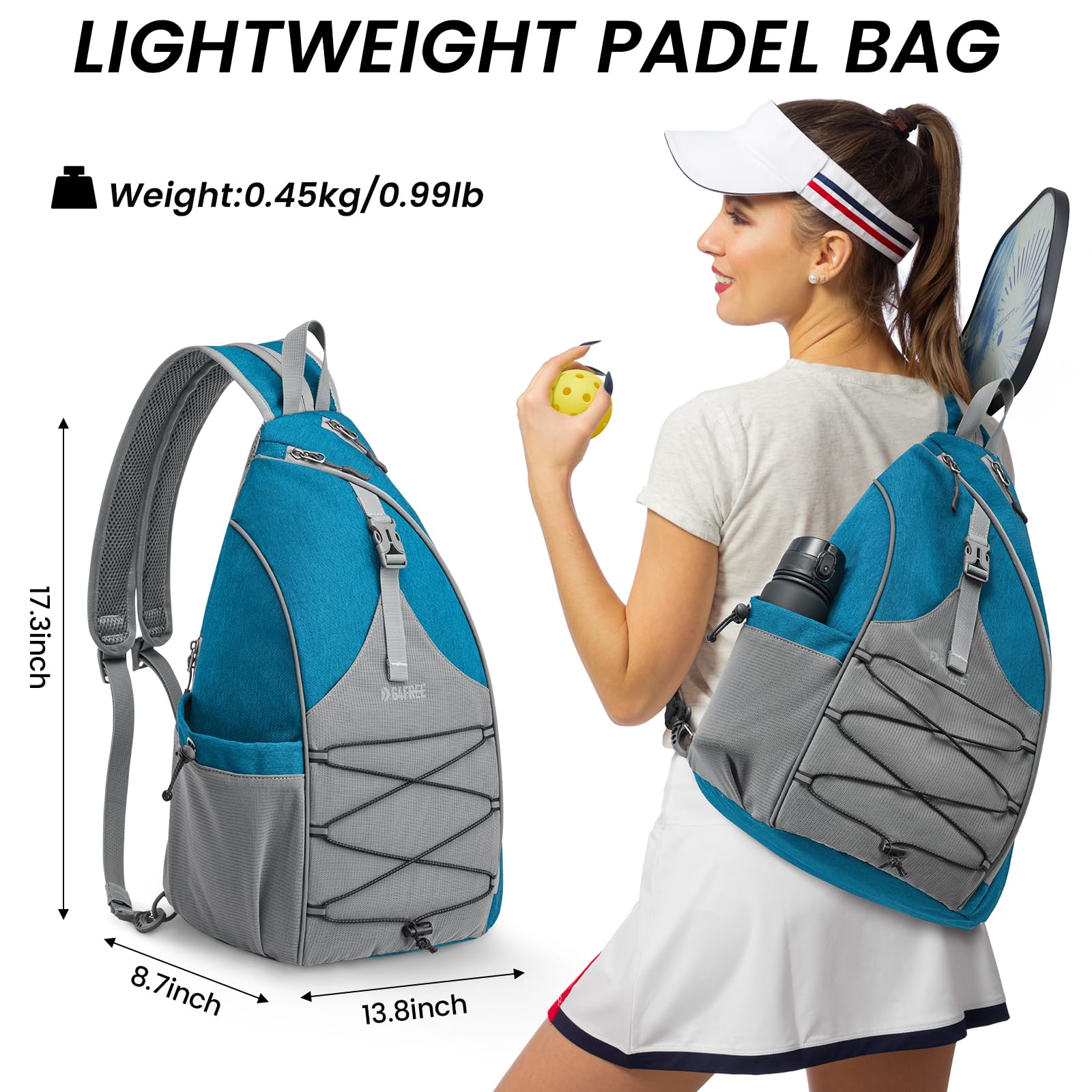 G4Free Pickleball Bag, Pickleball Backpack for Women & Men, Adjustable Sling Bag with Waterproof Pocket/Fence Hook, Teal Blue