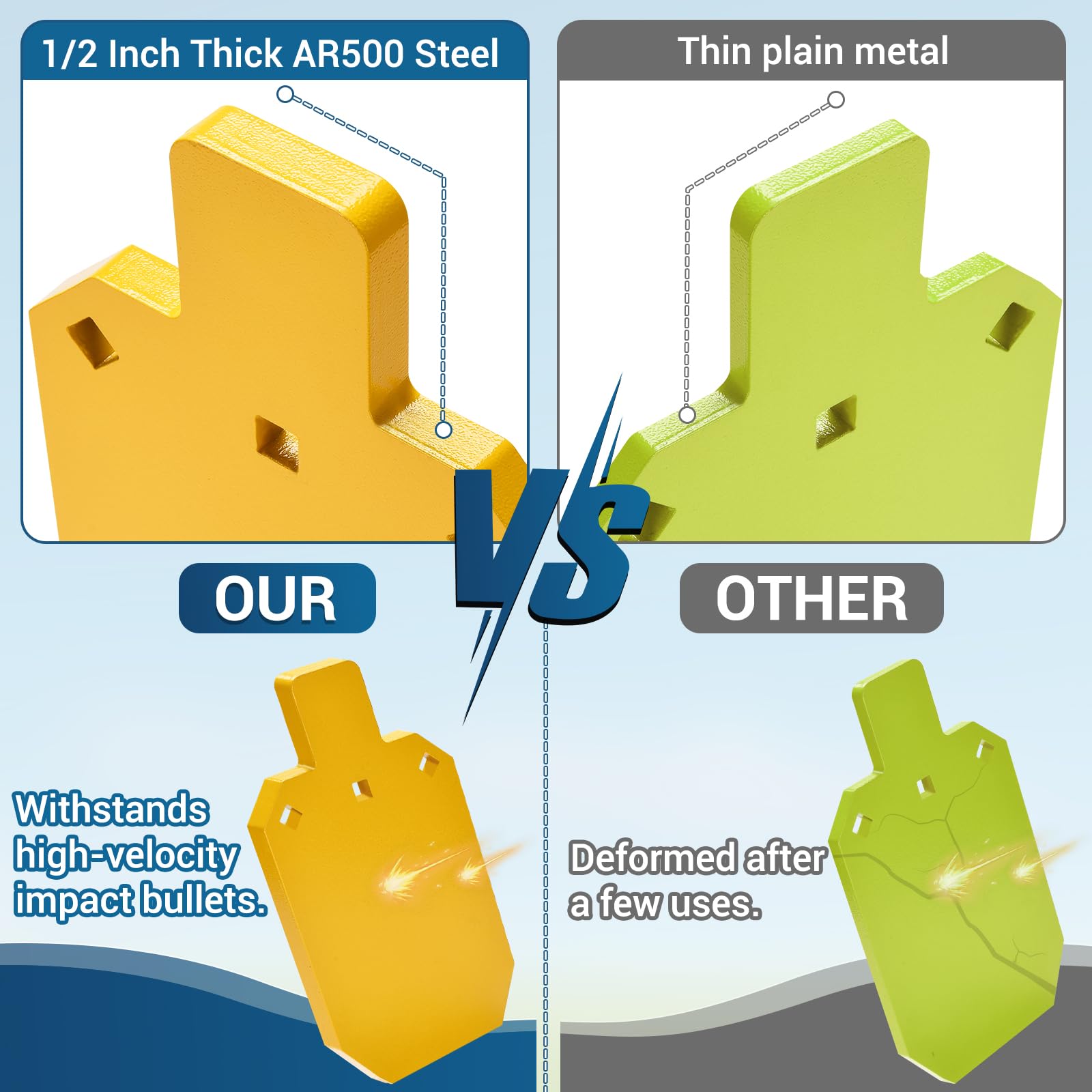 - 【AR500 Heavy Metal Material Steel Plate】GADFISH steel targets for shooting is made of 1/2-inch thick ar500 material and corrosion-resistant powder coating, which can resist bullets with high speed impact, and is not easy to rust or be corroded.