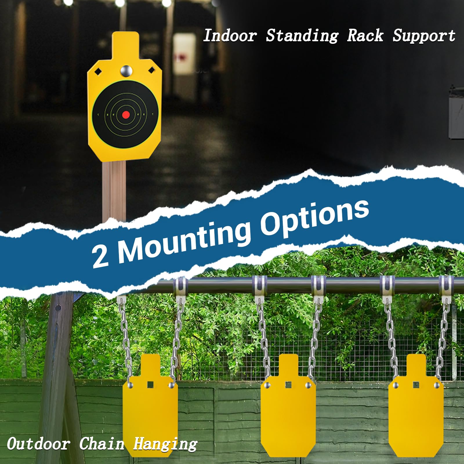 - 【2 Options & High Adaptability】You can attach this heavy-duty target shooting target to a 2×4 stake with the T-post target hanger to keep the stake securely and less likely to wobble. Or you can choose to hang the gun target with a chain through the two holes of the shooting target.