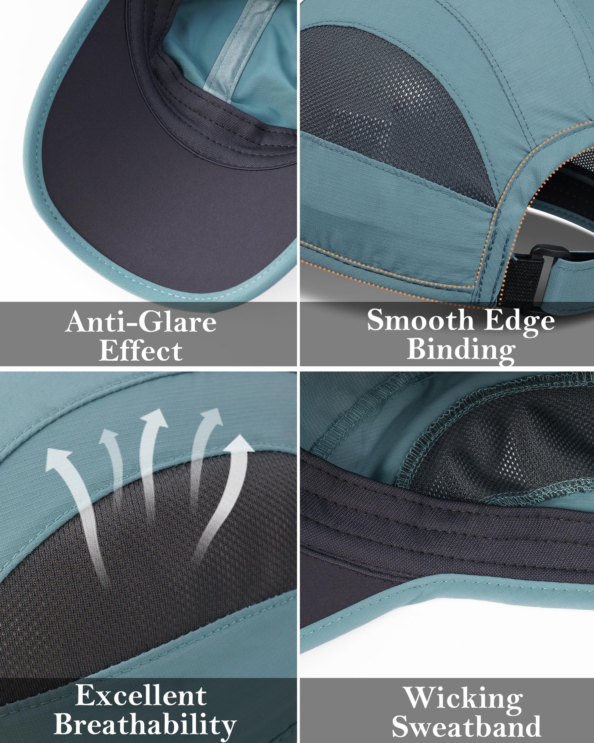 - Quick Drying Running Hat: This GADIEMKENSD hat is made of breathable fabrics, even if the hat is wet with sweat or light rain, it will dry quickly. Built in sweatband removes sweat from eyes and face. The two-side mesh design allows for moisture and heat to easily escape these caps, which not only keeps your noggin cool, but you’ll also stay dry