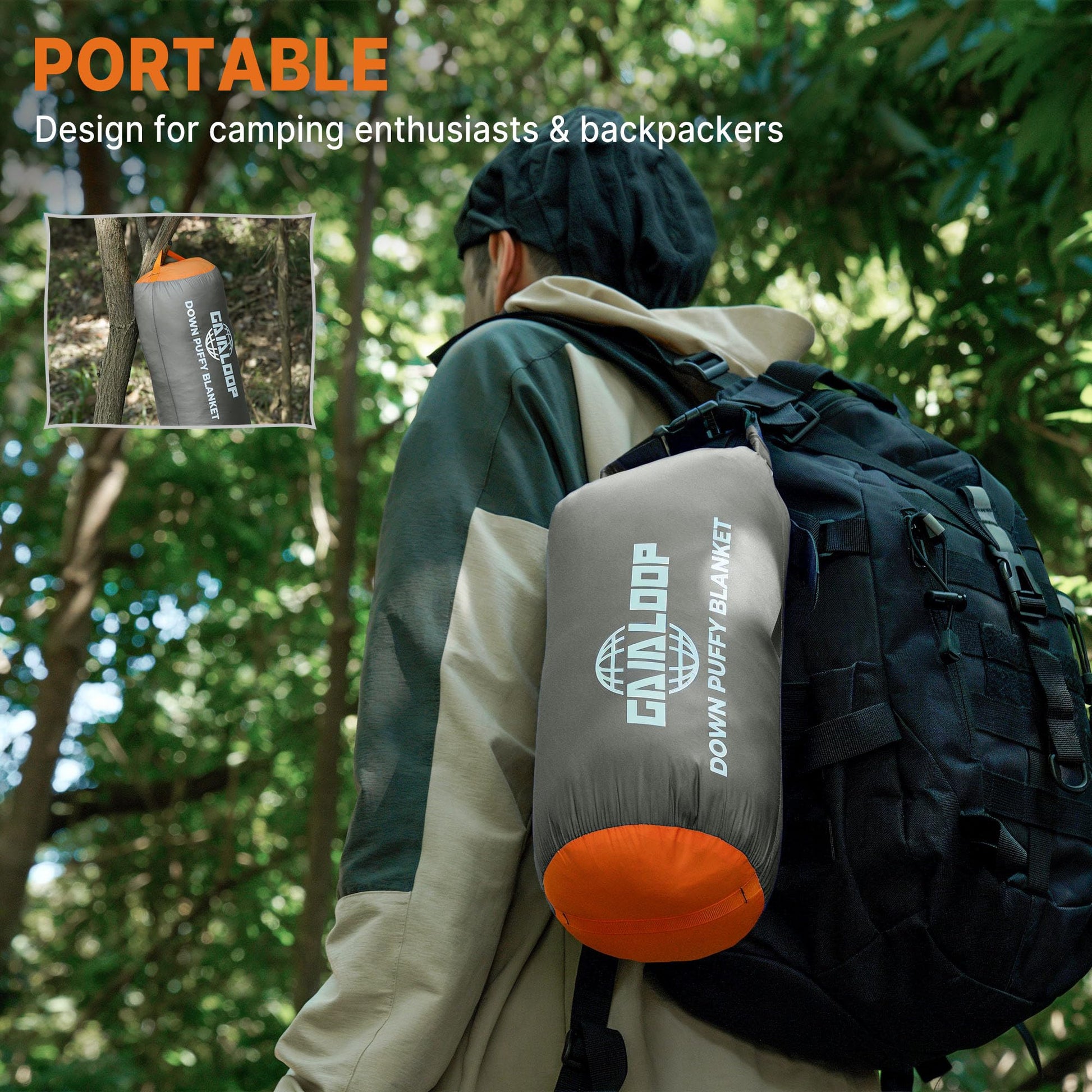 Gaialoop Down Puffy Blanket for Car Camping Outdoor Travel Backpacking, Duck Down Lightweight Portable Soft Warm Cozy Camping Blanket Quilt, 53"x78", Light Gray