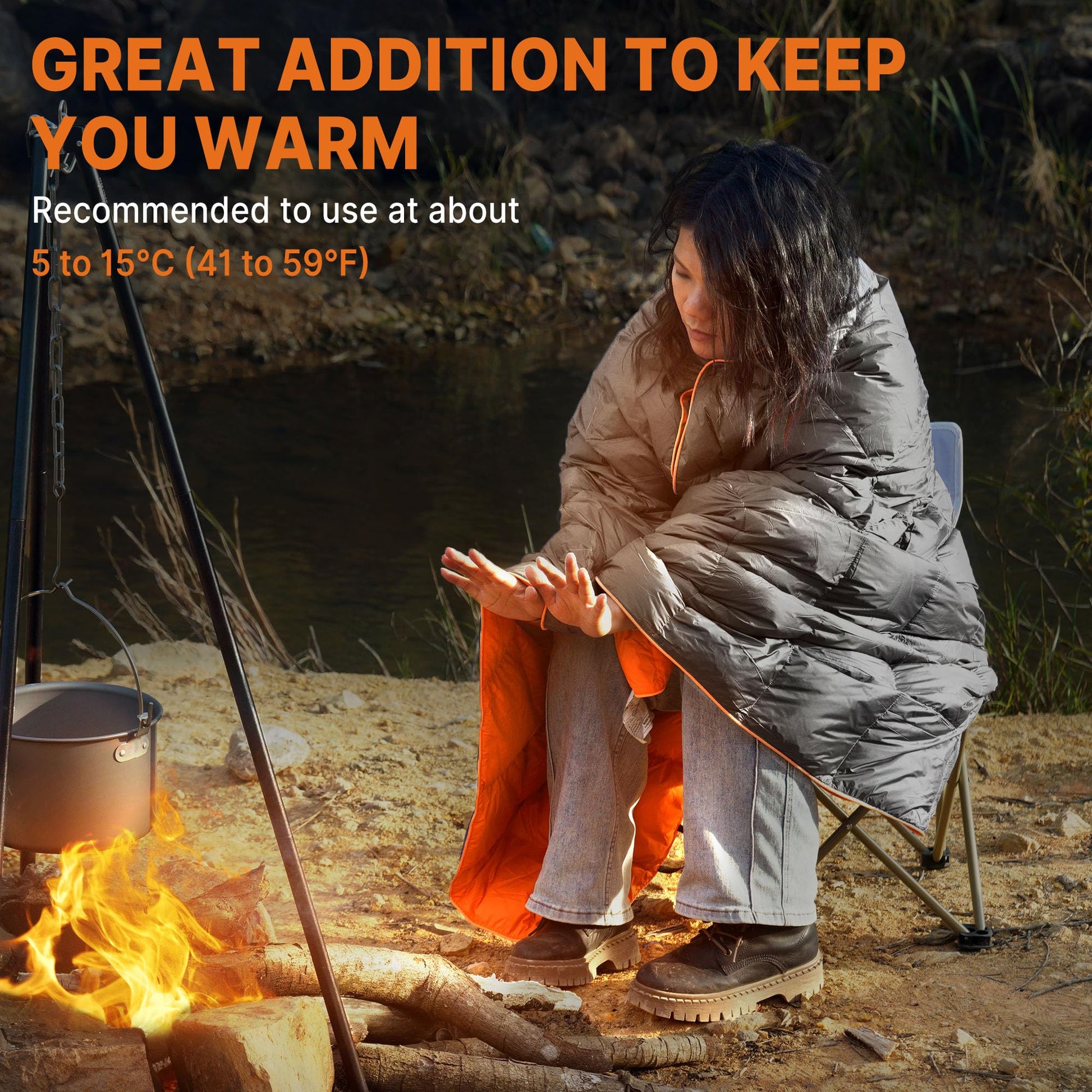 - 【Recommended Usage】Ideal as a lightweight, packable down camping blanket for temps above 5°C/41°F. Perfect for camping, travel, or as a sleeping bag liner for extra warmth.