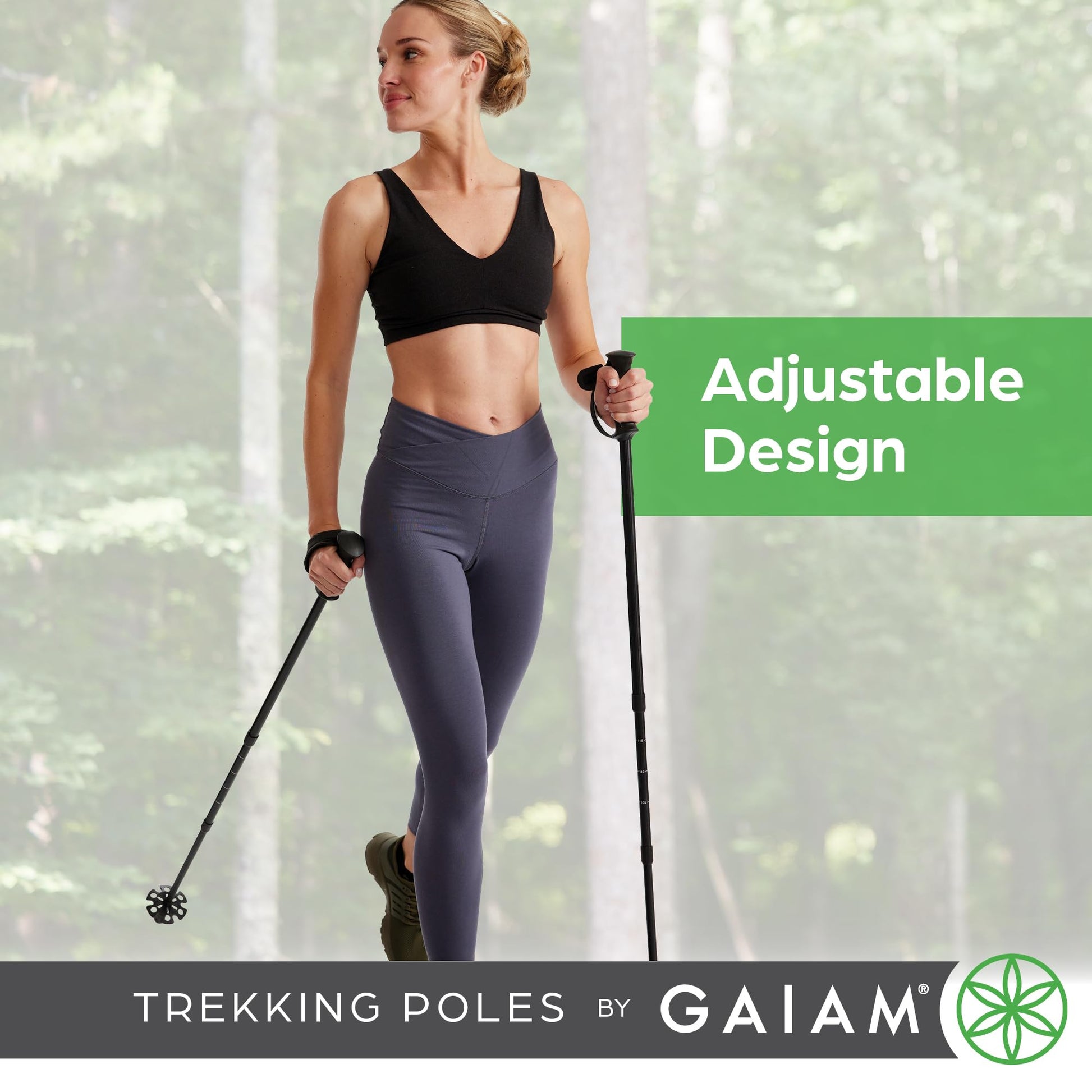 Gaiam Trekking Poles (Pair, Black), Lightweight 7075 Aluminum Hiking Support Walking Stick, Comfort-Grip Handles, All-Terrain Baskets & Styles Included, Camping & Hiking Essentials