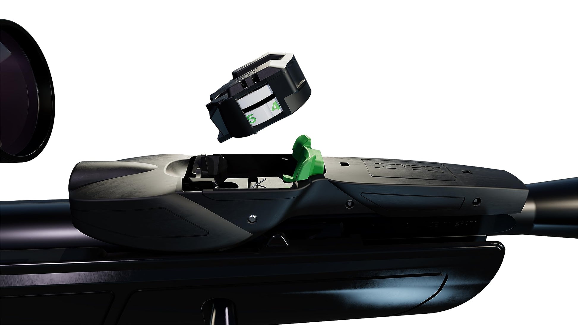 Details: This is the next generation Swarm Magnum pellet rifle in .22. Unprecedented speed and power. Unparalleled performance. Offering smoother operation and improved accuracy for an outstanding shooting experience, the Swarm Magnum Pro 10X GEN3i includes the patent-pending 10X GEN3i Technology with our revolutionary new horizontal inertia fed magazine integration, making it lighter, more compact and low profile. The magazine indexes using the inertia force from the recoil of the air rifle – creating a smoother and more precise breech-loading process. This air rifle features a new stock that combines a traditional hunting stock design with the automotive grade glass filled nylon materials. Forearm, grip and cheek piece are non-slip texturized.