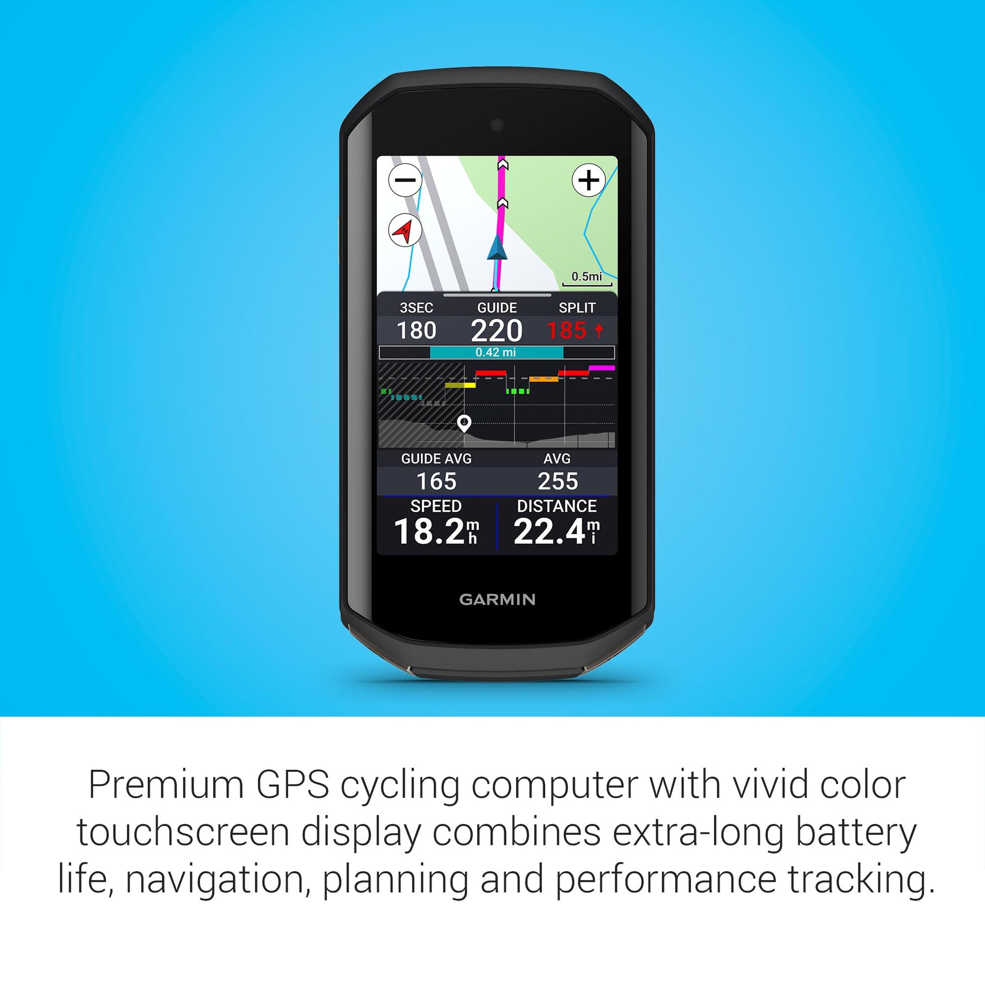 - See remaining ascent and grade when climbing on every ride so you can gauge your effort with the ClimbPro ascent planner