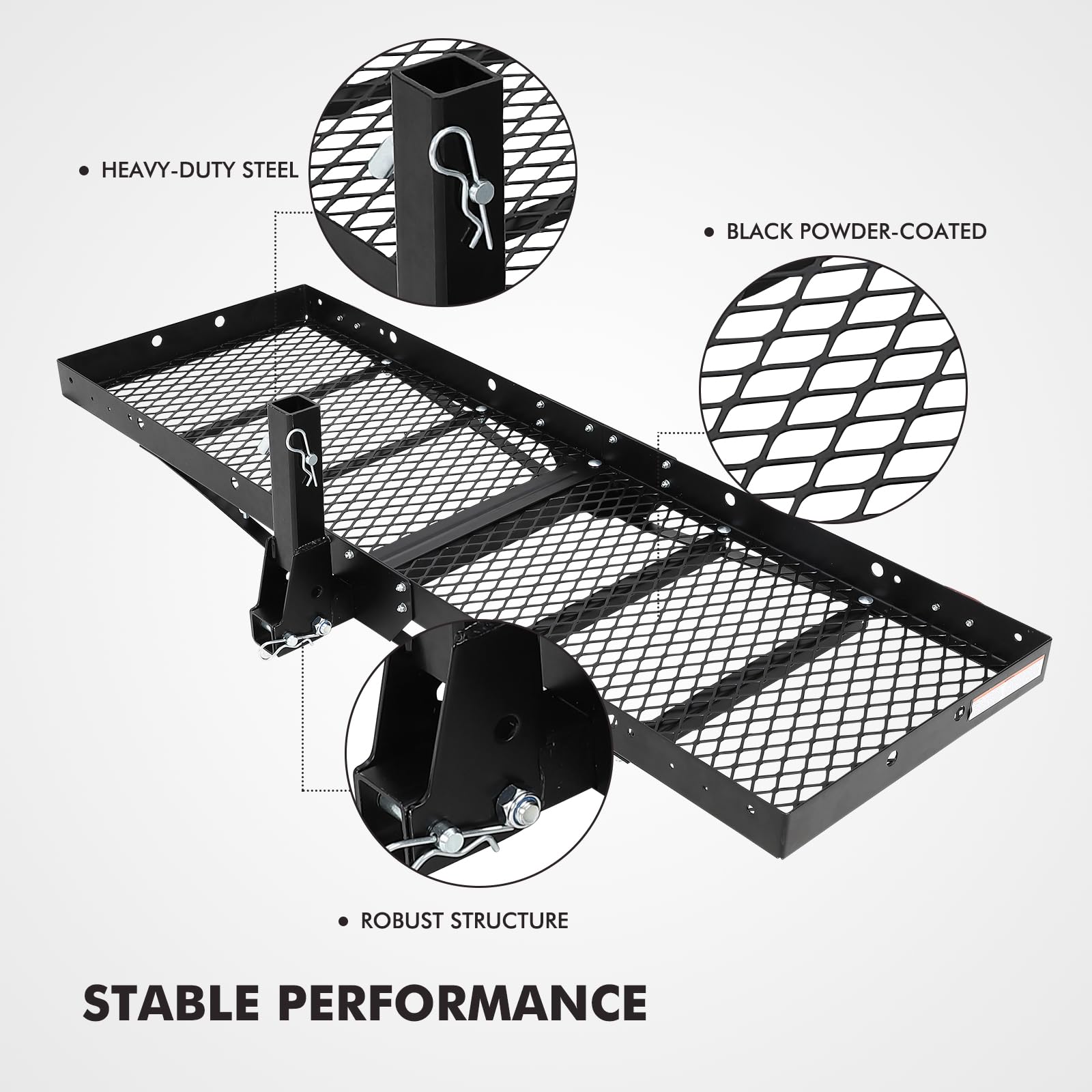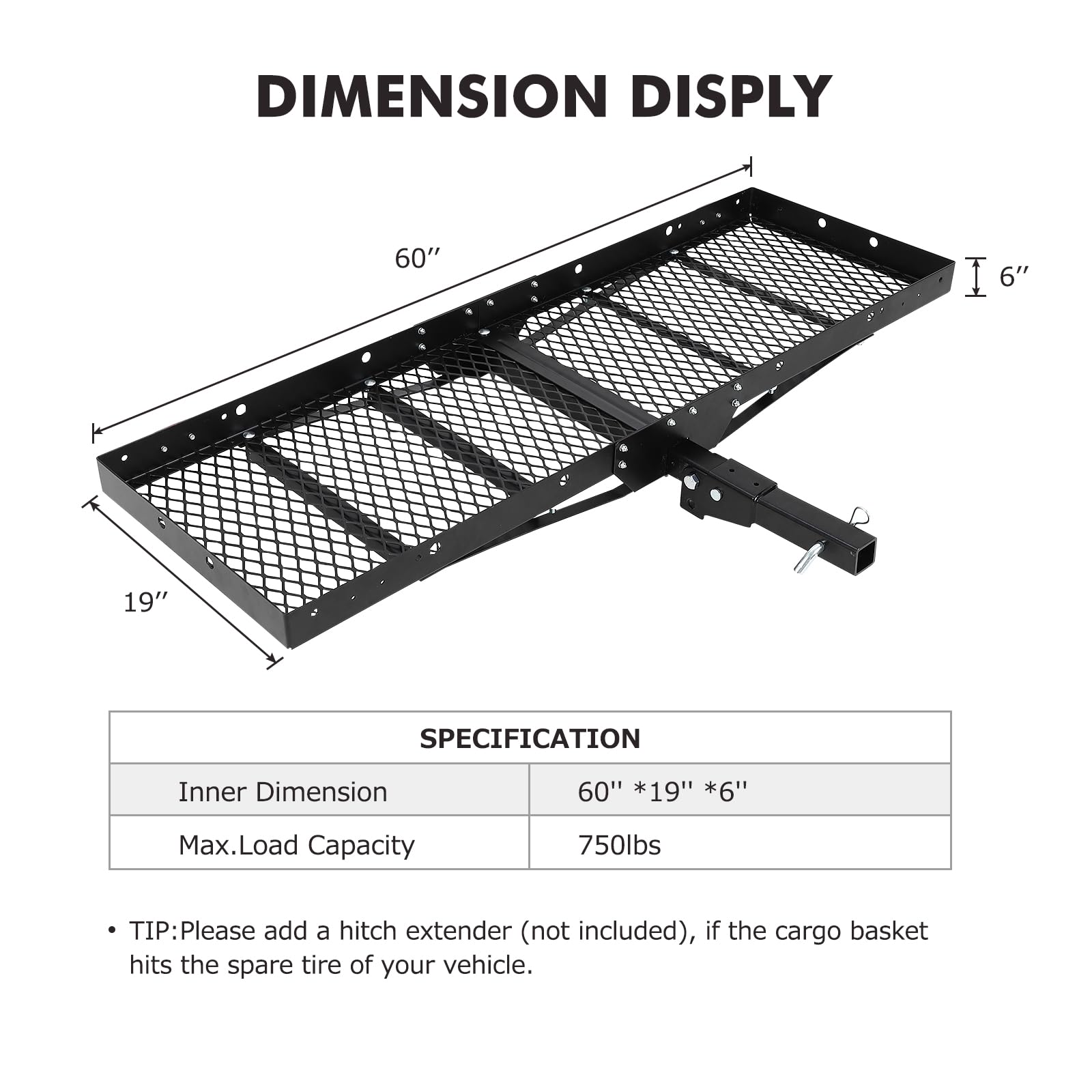 GarveeTech 750 Lbs Hitch Mount Cargo Carrier Basket 60" x19" x 6", Rear Luggage Rack Basket Fits 2" Receiver for Car Camping Traveling, Black Cargo Carrier Basket
