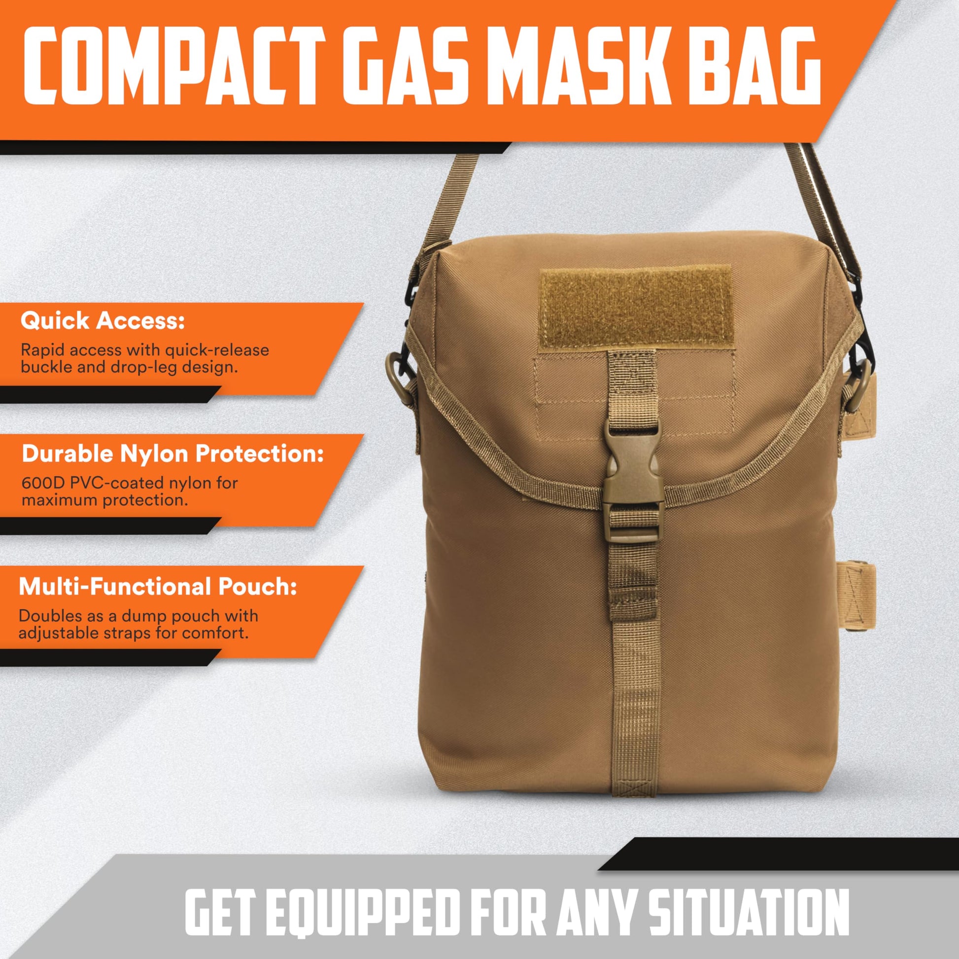 - BE READY: Keep your gas mask accessible and ready at a moment's notice. When catastrophes hit, seconds are crucial to maintaining maximum safety and survivability. That's why we engineered our rugged nylon gas mask bag/tactical pouch to do precisely that, offering superior protection for your respirator or survival equipment while keeping it comfortably on your hip all day long for quick access when you need it most.