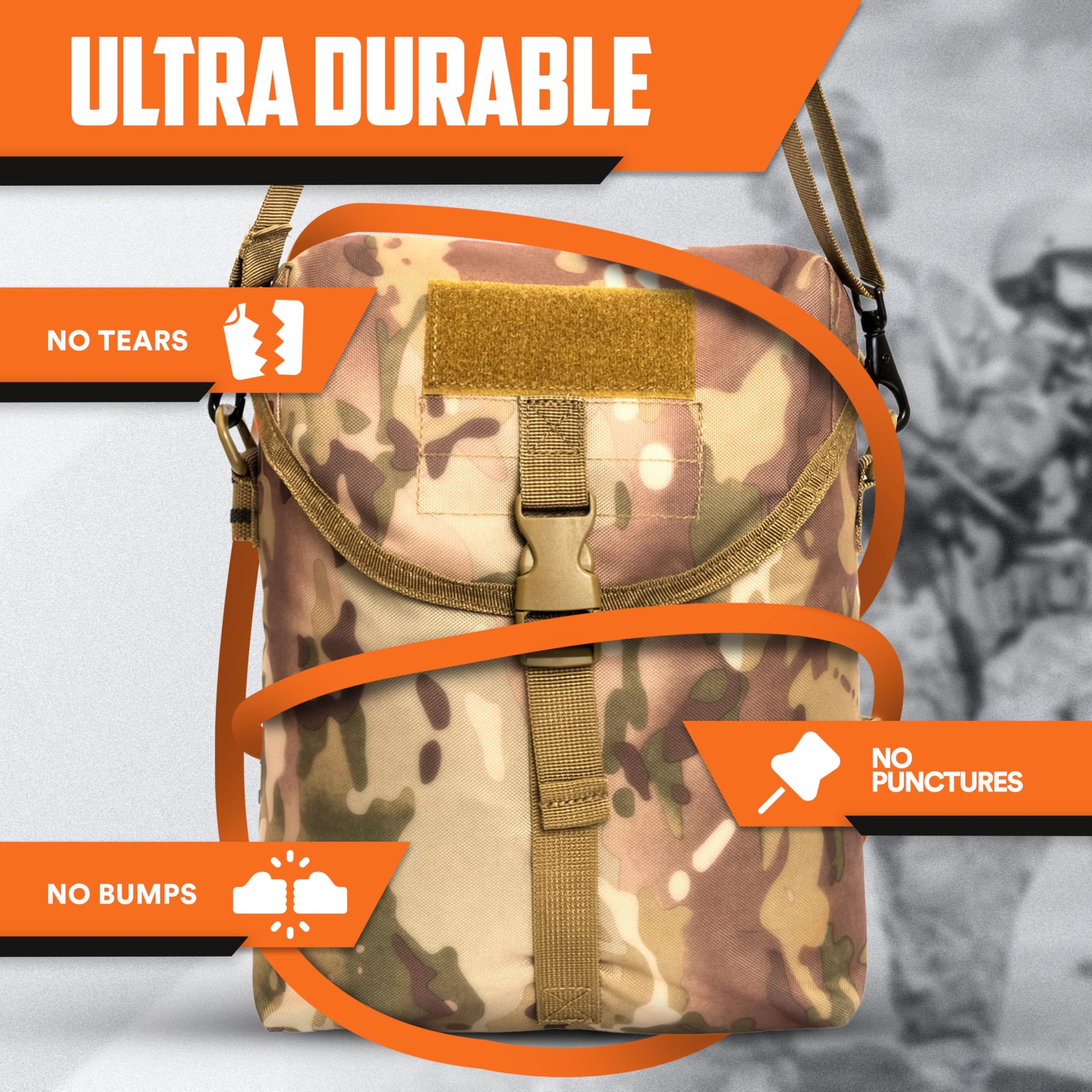 - RUGGED: Ripstop nylon construction. Don't worry about bumps, tears, or punctures. Our gas mask bag/tactical pouch will hold up to the rigors and demands of extreme conditions, protecting your mask and ensuring you get a good seal even after days of rough hiking. This durable 600D PVC coated nylon fabric pouch also makes the perfect dump bag for empty magazines during firearms training or competition.