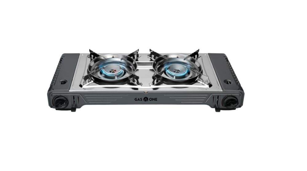 Details: GasOne 2-Burner Portable Camp Stove - High Output 15,300 BTU - With Durable Carrying Case, Automatic Ignition, Safety Features, Perfect for Camping, Hiking, Tailgating, and Emergency Preparedness