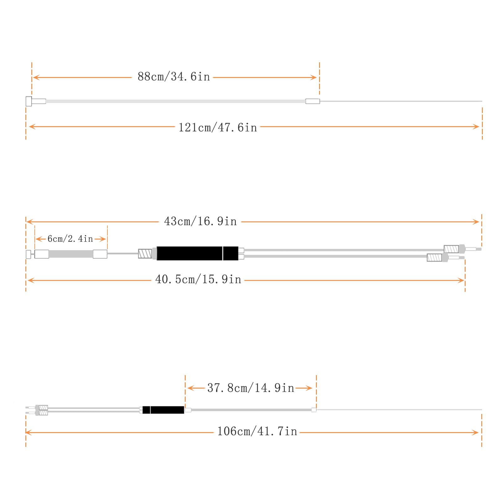 - PERFECT SIZE AND EASY TO INSTALL - Front brake cable:91cm (35.8''),outer housing cable:80cm (31.5''), upper rear cable:40-42 cm (15.7 - 16.5''), lower rear cable 90 cm (35.4''),outer housing cable:38 cm (14.9'') ,you can install it easily, no need to ask someone.