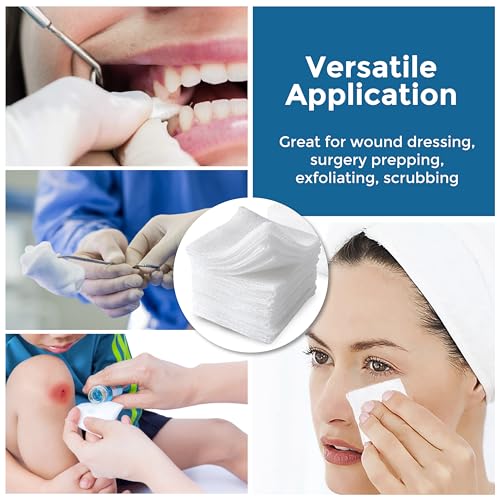 - HIGHLY ABSORBENT: Experience superior wound cleansing, drying, and dressing. Made of incredibly soft, thick, highly absorbent cotton, our non-woven gauze pads make light work of soaking up blood from a wound or gently and effectively cleansing pores and removing excess oil.