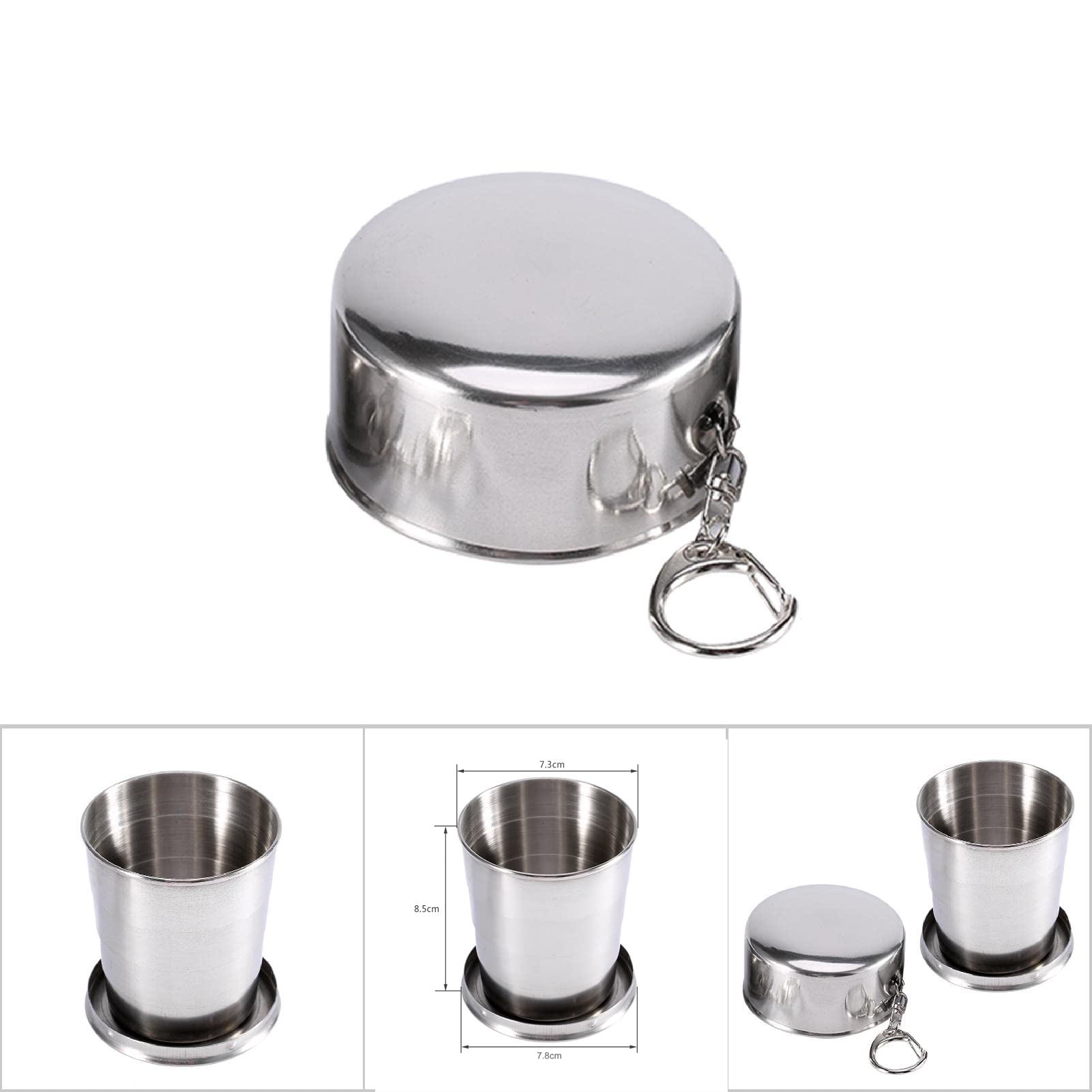 Gavigain Stainless Steel Collapsible Cup Portable Telescopic Shot Glass with Metal Keychain and Lid for Travel, Camping, Picnic (8.12Oz)