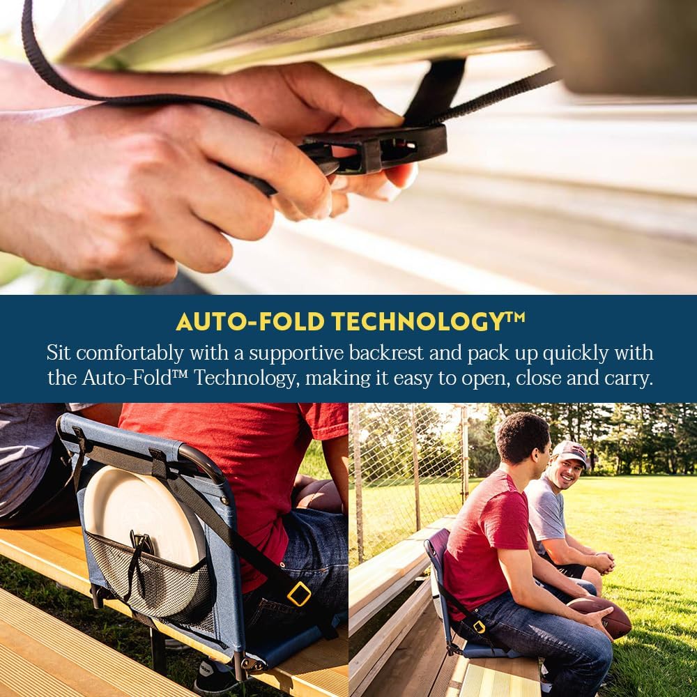 - Folding outdoor stadium chair with backrest and armrests for comfortable and supportive seating on bleachers and benches