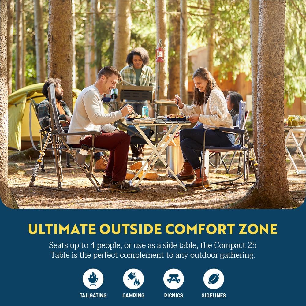 - BUILT FOR ADVENTURE. Enjoy the Compact Camp Table 20 wherever you go thanks to a built-in carry handle for maximized portability, whether you're going fishing for the day or camping for a month.