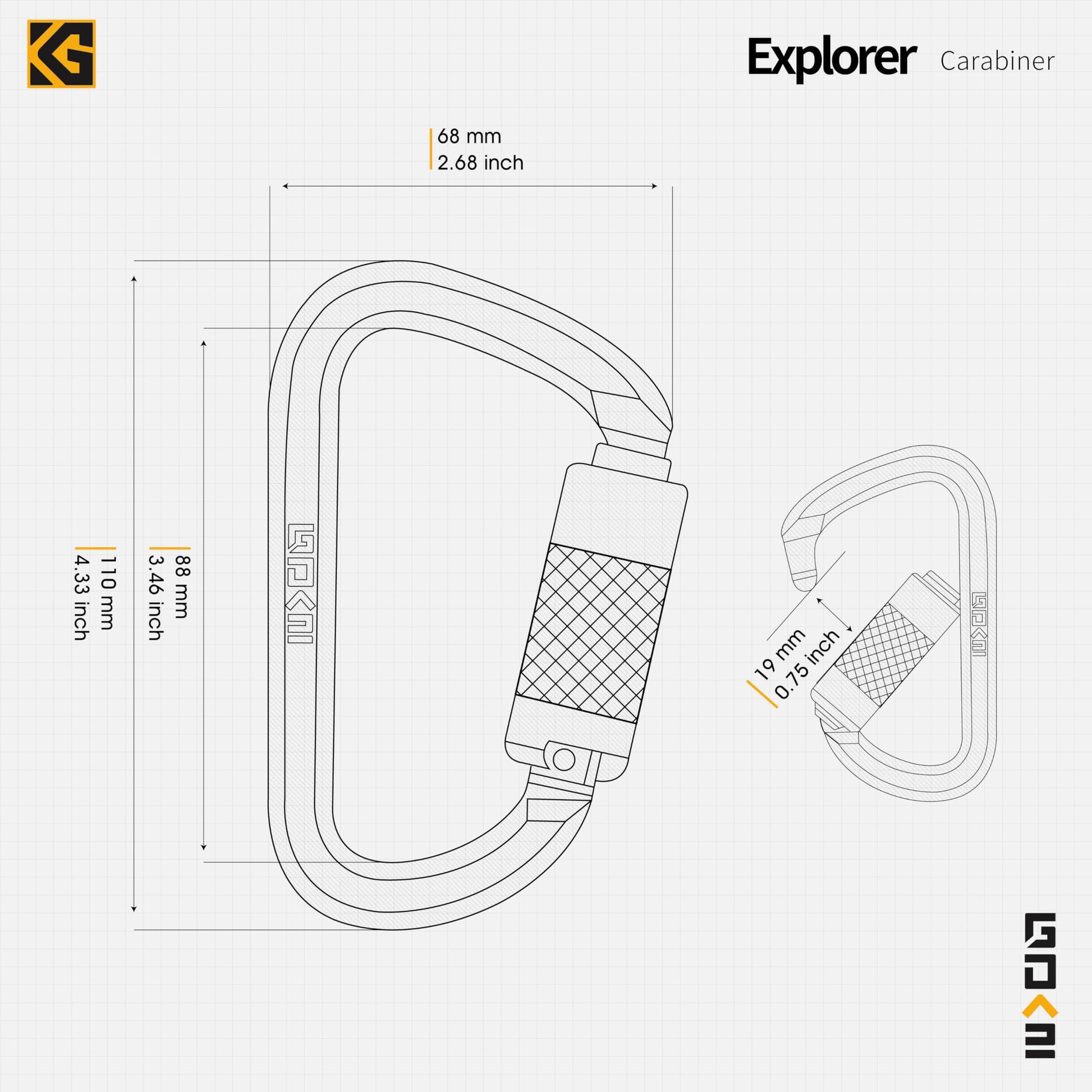 GDK2 Explorer CE Certified 50kN Screwgate Locking Carabiner in Size 4.33 x 2.68 inch, Heavy-Duty Carabiners for Climbing, Mountaineering, and Rappelling, Alloy Steel, Midnight Black,1 Pack