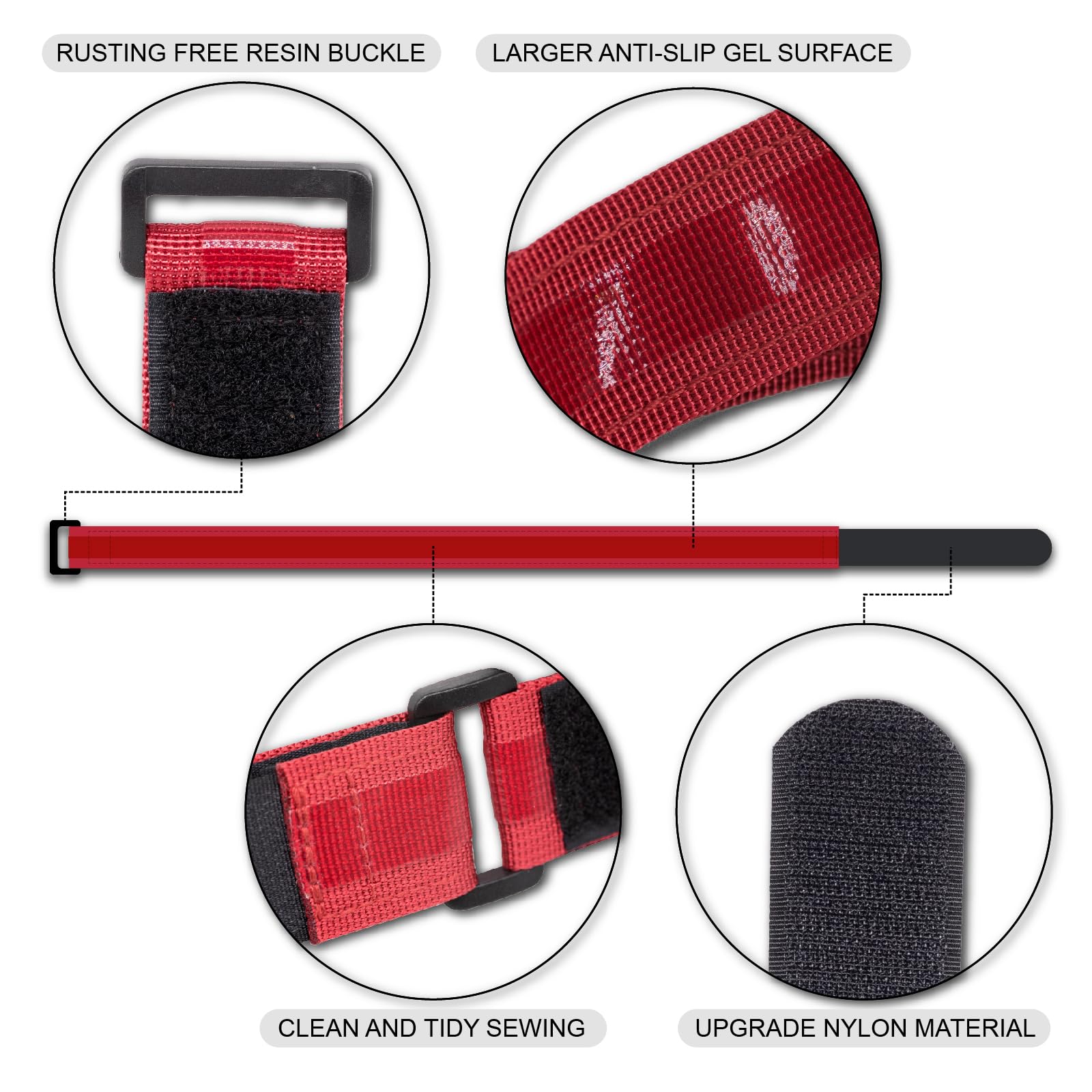 - UPGRADE DESIGN: The larger gel surface provides stronger grip and slip resistance. These Straps for bike rack use a strong durable stitch instead of heat-pressed technology, so there's no more peeling. It also has soft straps and a sturdy buckle to protect bicycle paint.