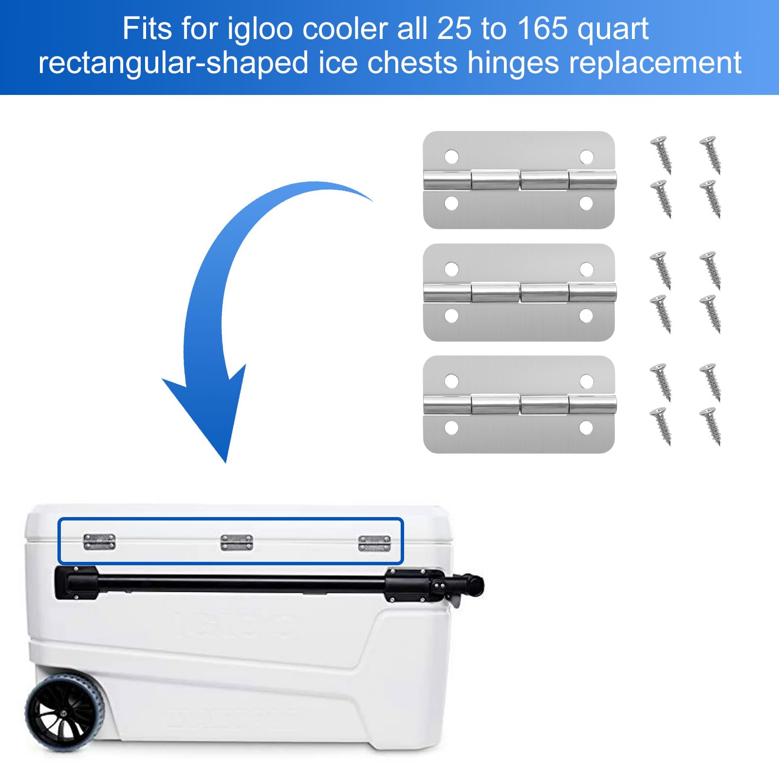 - Cooler Stainless Steel Hinges Fits for igloo cooler all 25 to 165 quart rectangular-shaped ice chests hinges replacement