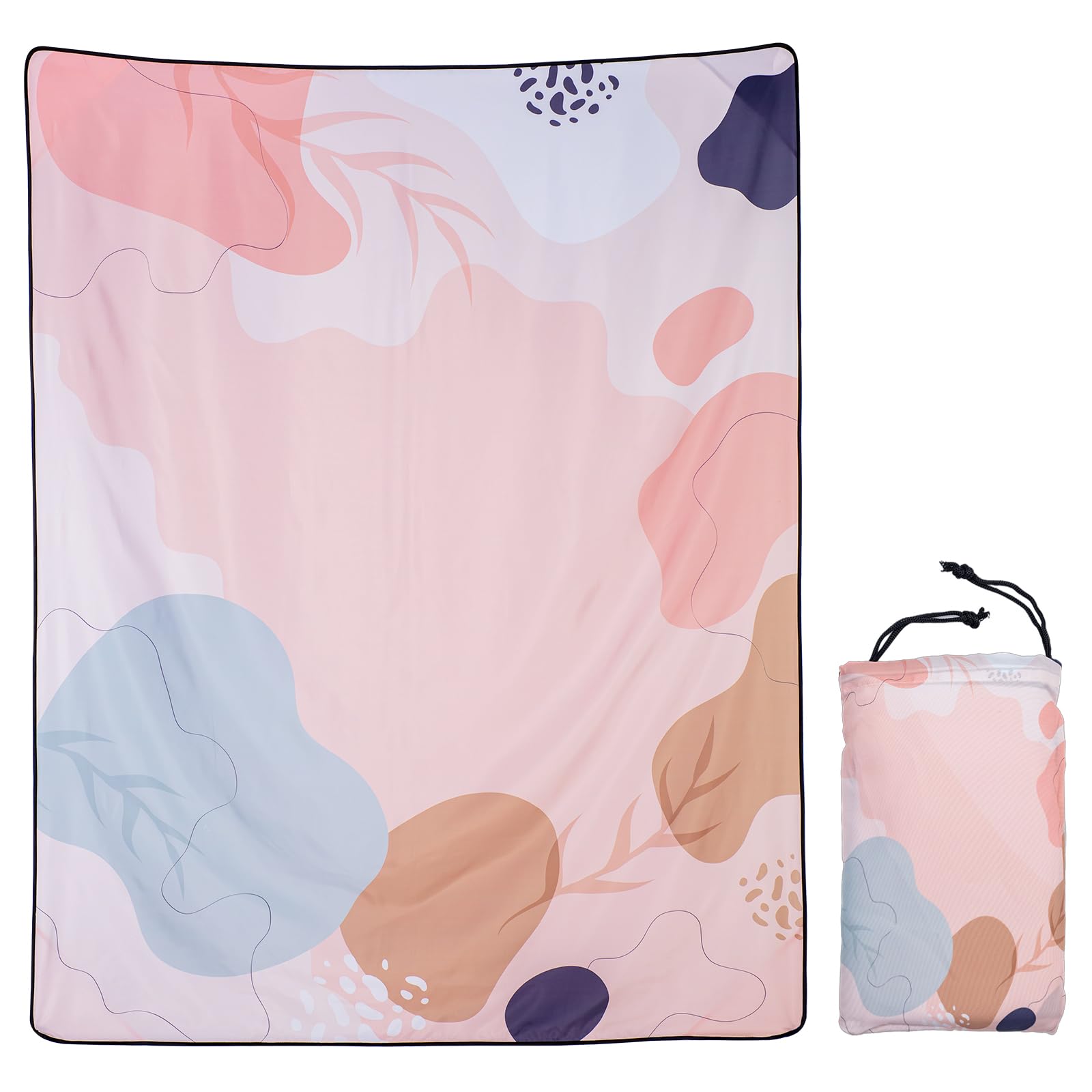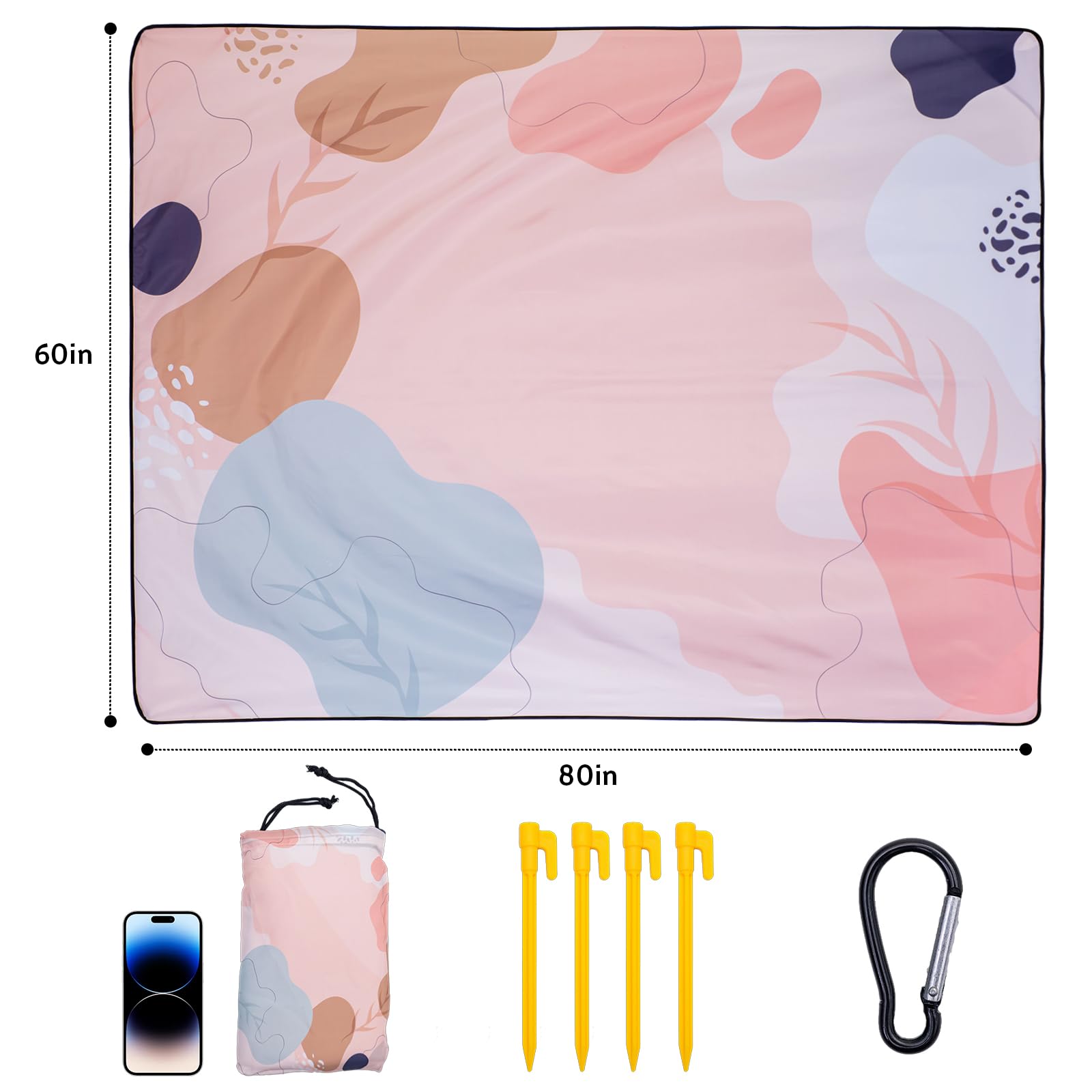 Gealaek Pink Abstract Waterproof Sandproof Picnic Beach Blanket, 87x71 Inches, Queen Size, 100% Polyester, Foldable, Camping, Travel, Hiking, Beach