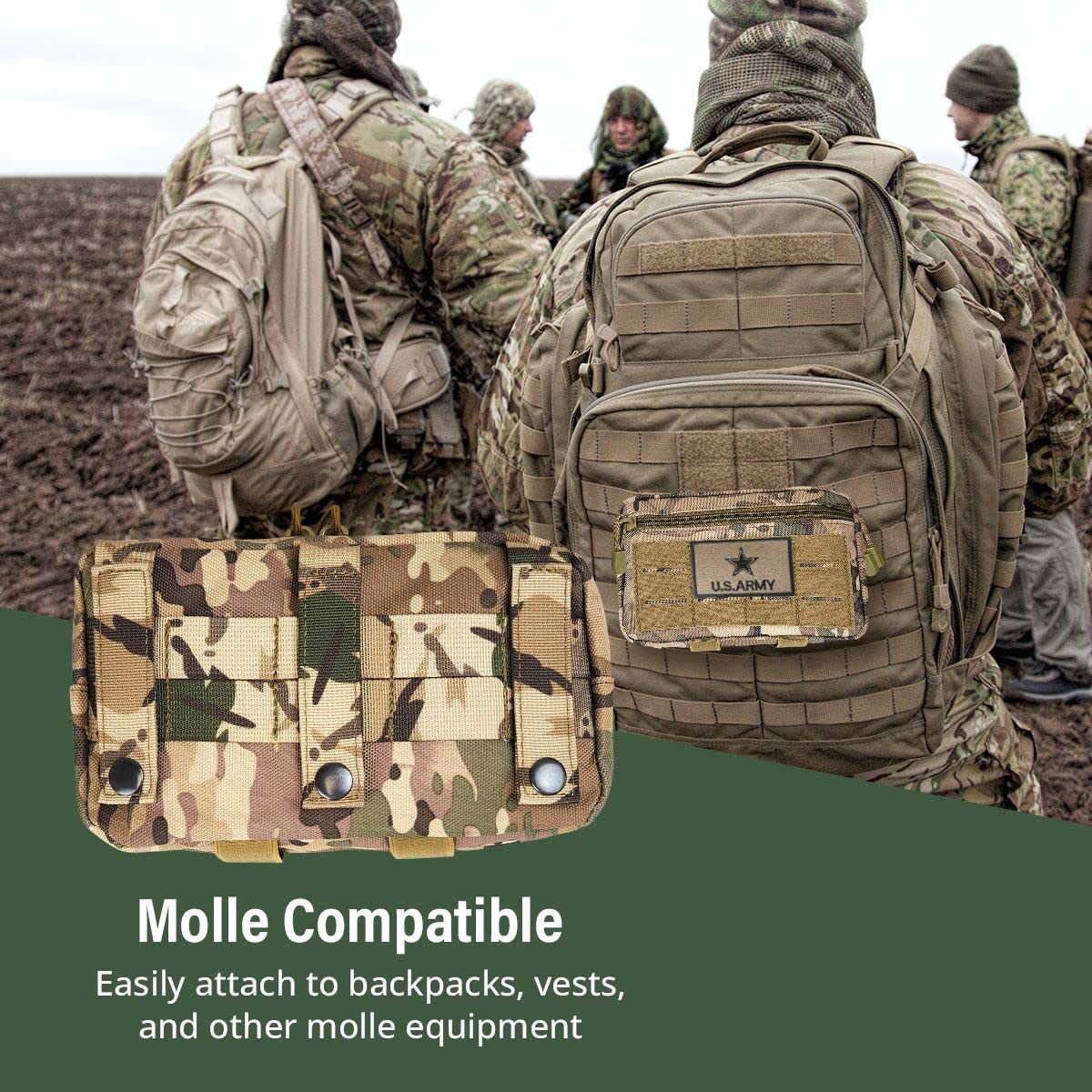- 3 vertical straps and metal snaps on the back allow you to add the pouch to belt, tactical backpack, or other molle system. Easy to carry, install and detach.