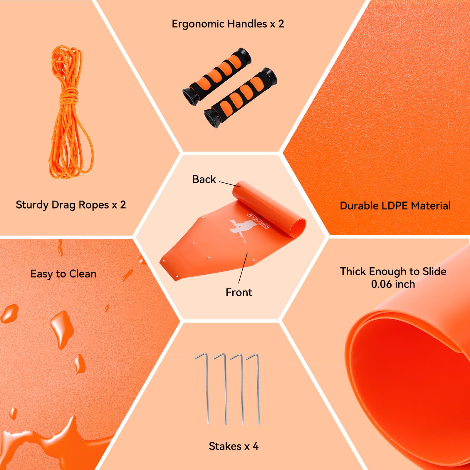 - π¦β [Make Dragging Easier] GearOZ deer sled changes the old way of harvesting. It comes with 2 sturdy ergonomic handles, providing a more effortless and labor-saving experience while dragging. Besides, the smooth material reduces friction on the ground, allowing the sled to move quickly in places where vehicles cannot pass or on rough mountain roads. This design gonna protect your shoulder and back while pulling, even alone/elder/women can easily harvest their game.