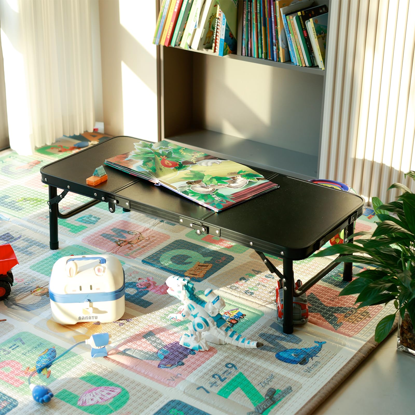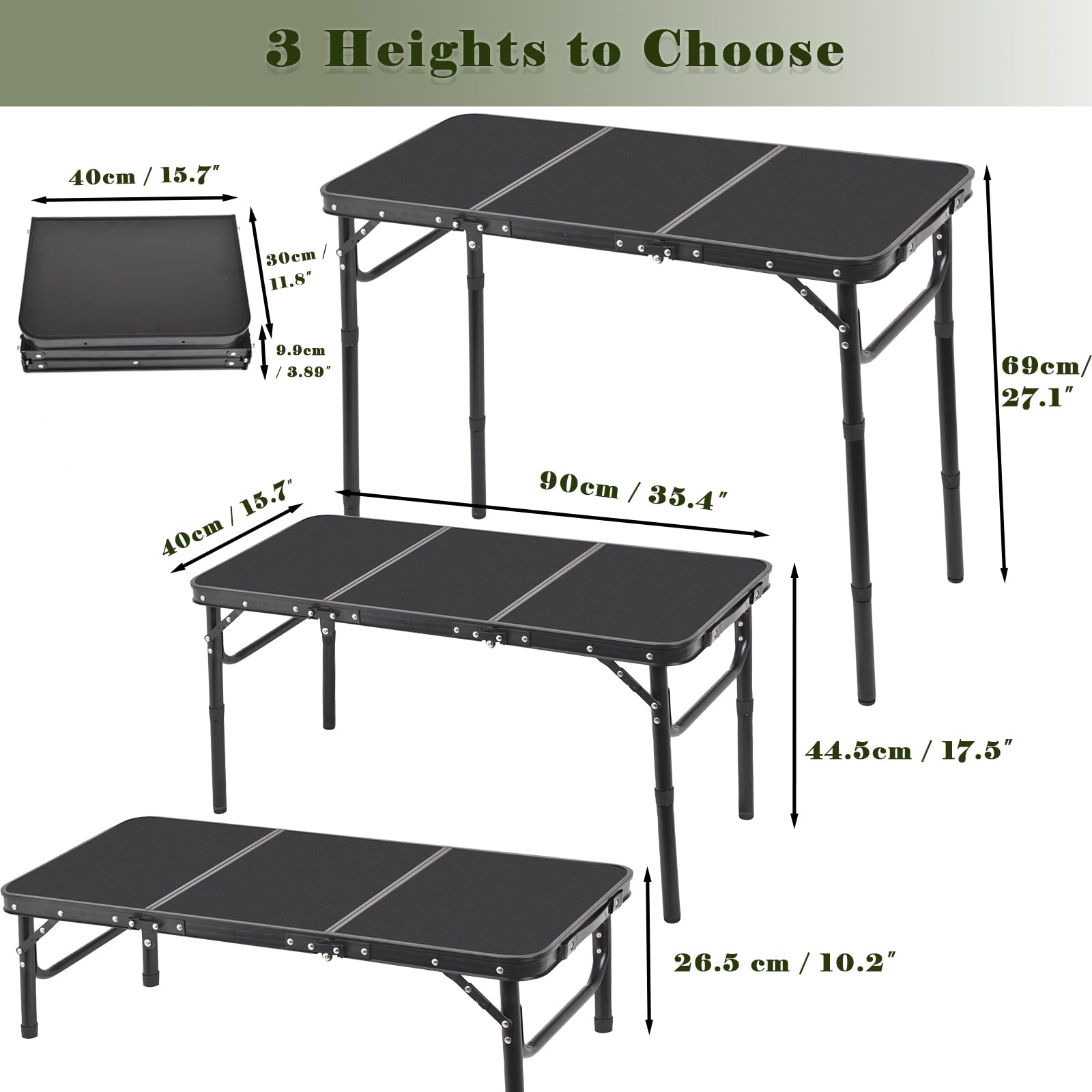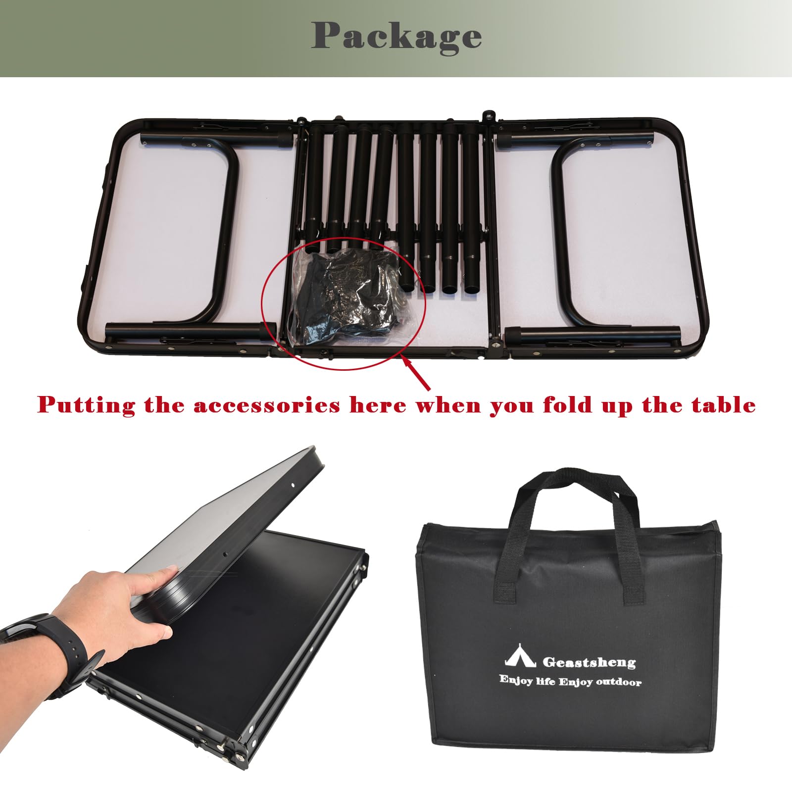 Geastsheng Portable Folding Camping Table, Lightweight Aluminum Outdoor Picnic Table with Adjustable Height, Compact & Sturdy Kid Table for Camping, Hiking, Backyard, Beach, Black