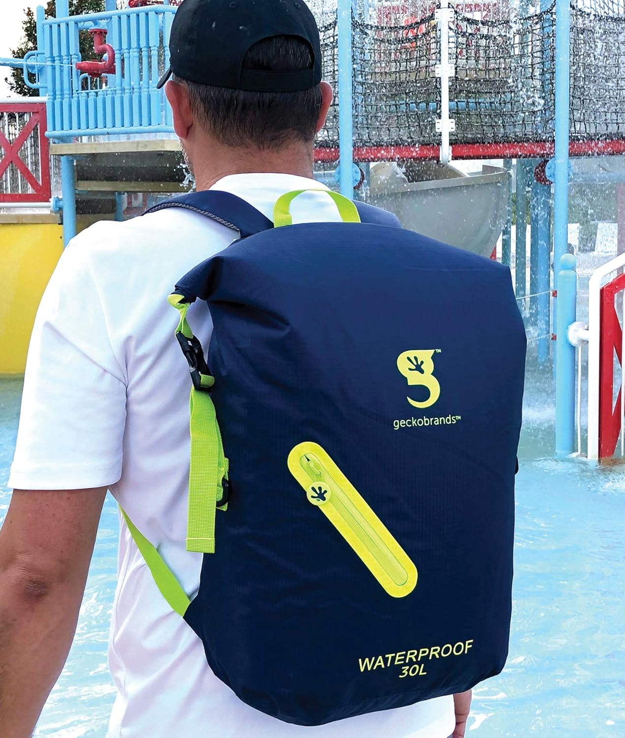 Geckobrands' lightweight 30l waterproof backpacks are great for activities such as going to the beach, pools, boating, tubing, kayaking, or even skiing and snowboarding.