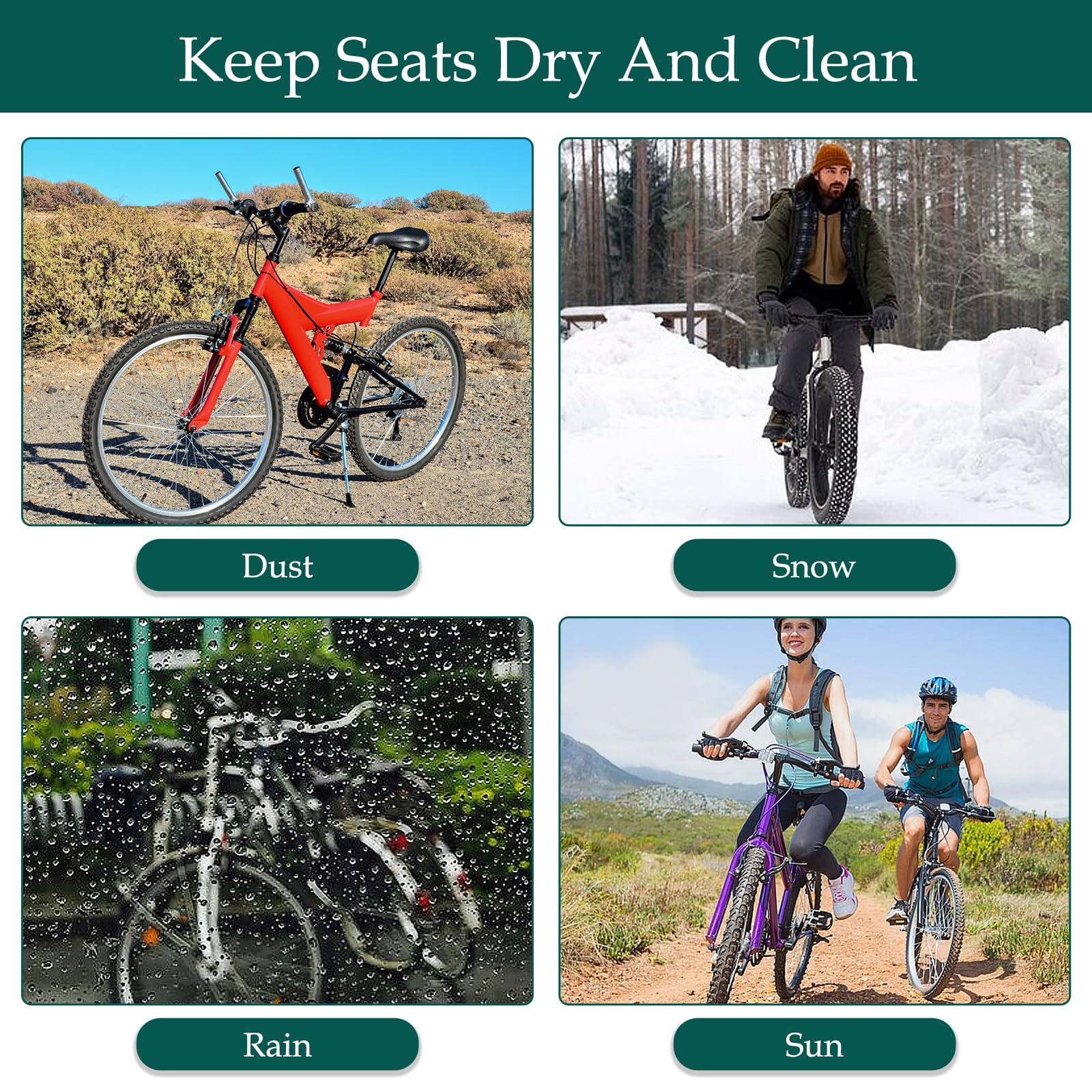 - 【Extend seat life】 Bicycle seat rain cover covers the saddle protects the seat surface from cracks in the sun and protects your bike saddle seat from wetness by rain and snow. The bicycle seat cover also helps prevent scratches keeping your saddle clean and in good condition during your travels.