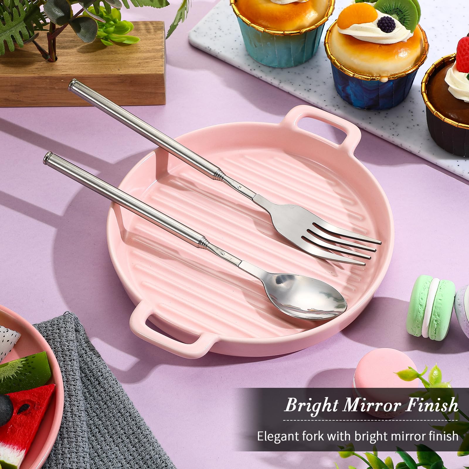 - Cutlery Set: each package comes with 1 telescopic spoon and 1 long handle fork, promising a complete dining experience; The dessert forks and spoons cater to a range of dishes, ensuring you have the correct utensil for each of your meals, adding convenience and refinement to your dining experience