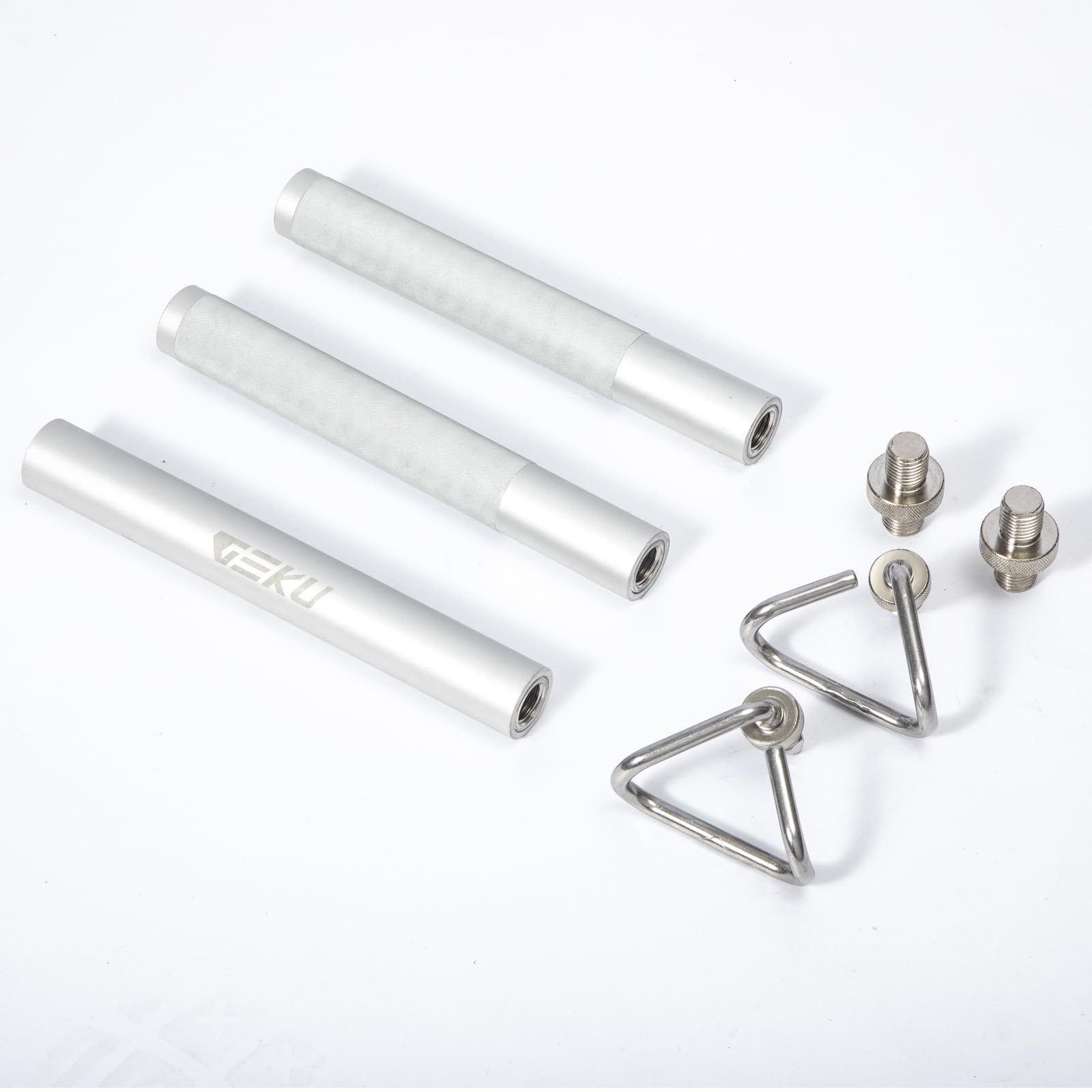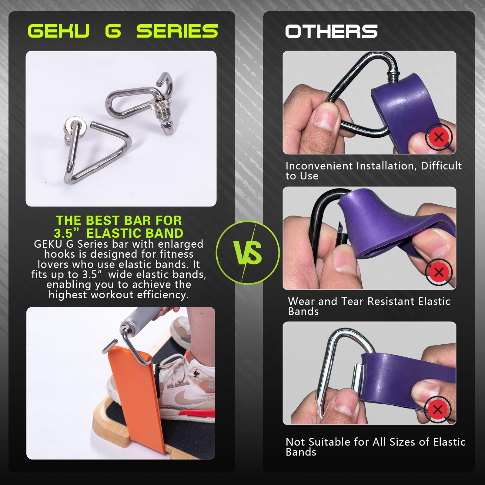 GEKU FIT Aluminum Resistance Band Bar, 3-Section Detachable Heavy Duty Workout Bar for Resistance Band Exercises, Strength Training, and Home Gym (Metal Bar-Enlarged Hooks)