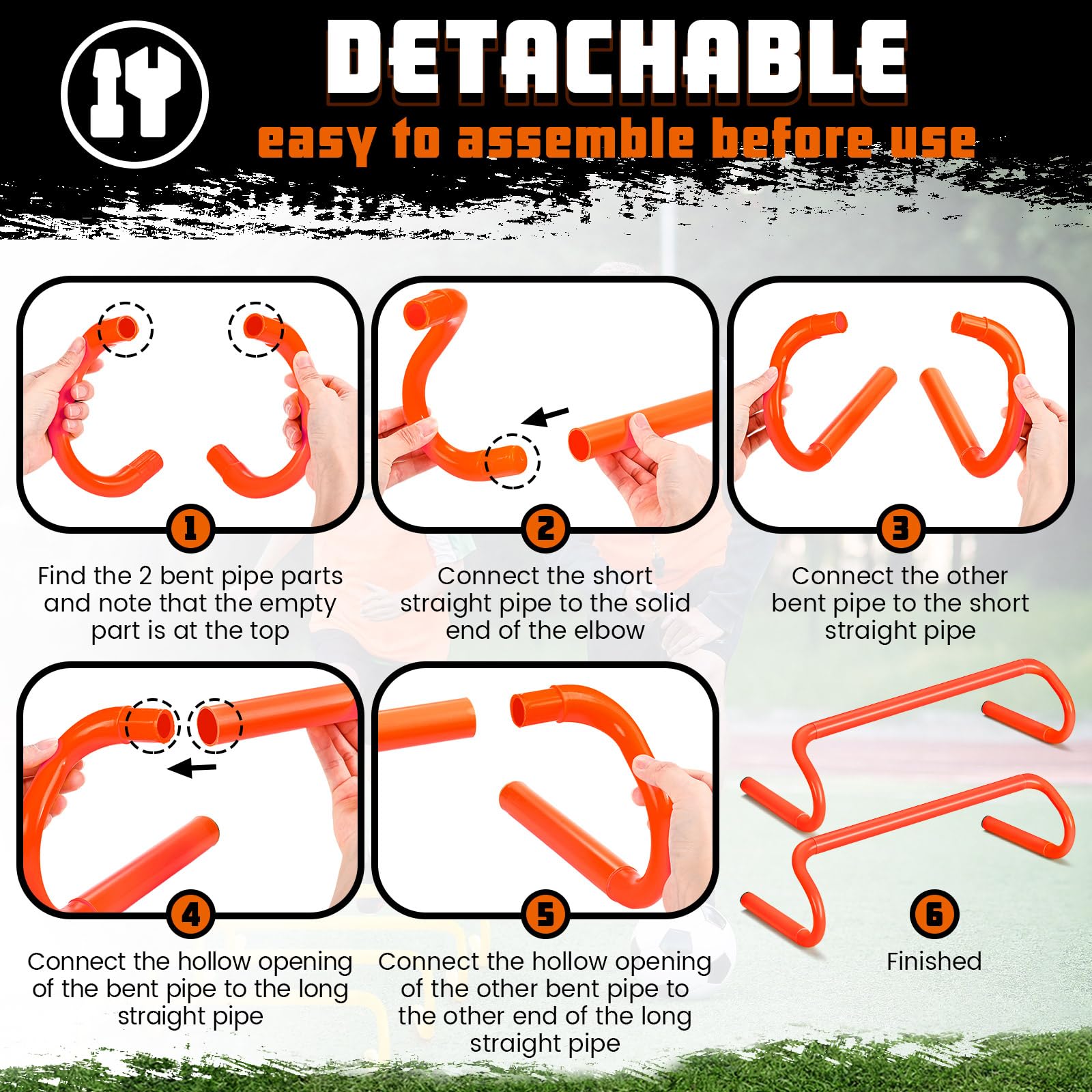 - Detachable and Portable: made of lightweight, durable, weatherproof PVC for long lasting durability, measuring about 19 x 9.5 x 6 inches, the agility speed hurdles are designed to be detachable; Installation is quick and simple, and the speed hurdle set can be easily carried in a bag to gym classes, training grounds, or club