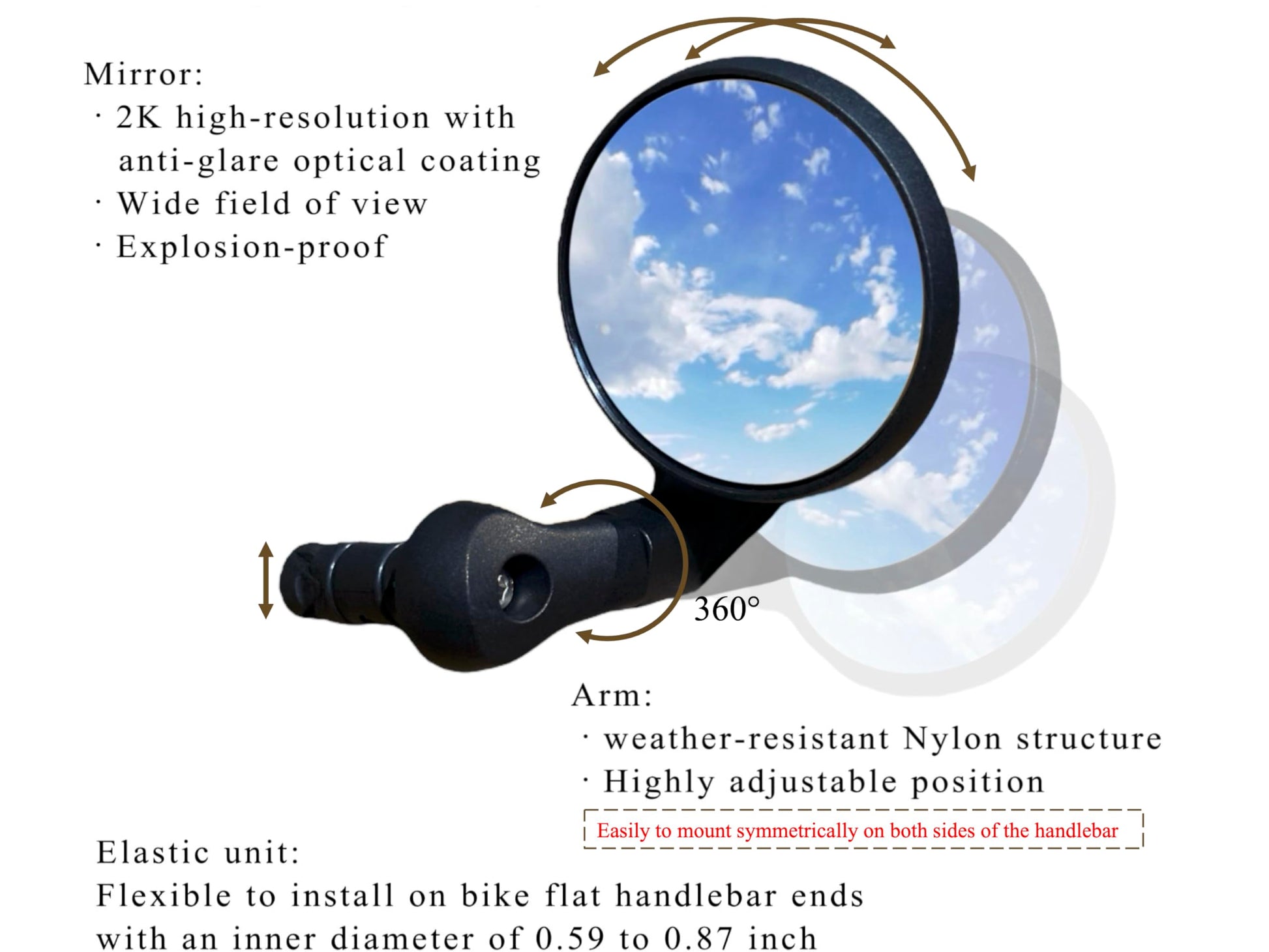 - Handlebar-End Mounted-This rear view mirror affixes securely to the end of your bike’s handlebars, delivering stable, high-visibility rear monitoring. Its ergonomic positioning allows for an expansive field of view, facilitating safe and effortless observation of surrounding traffic, while ensuring your attention remains directed forward.