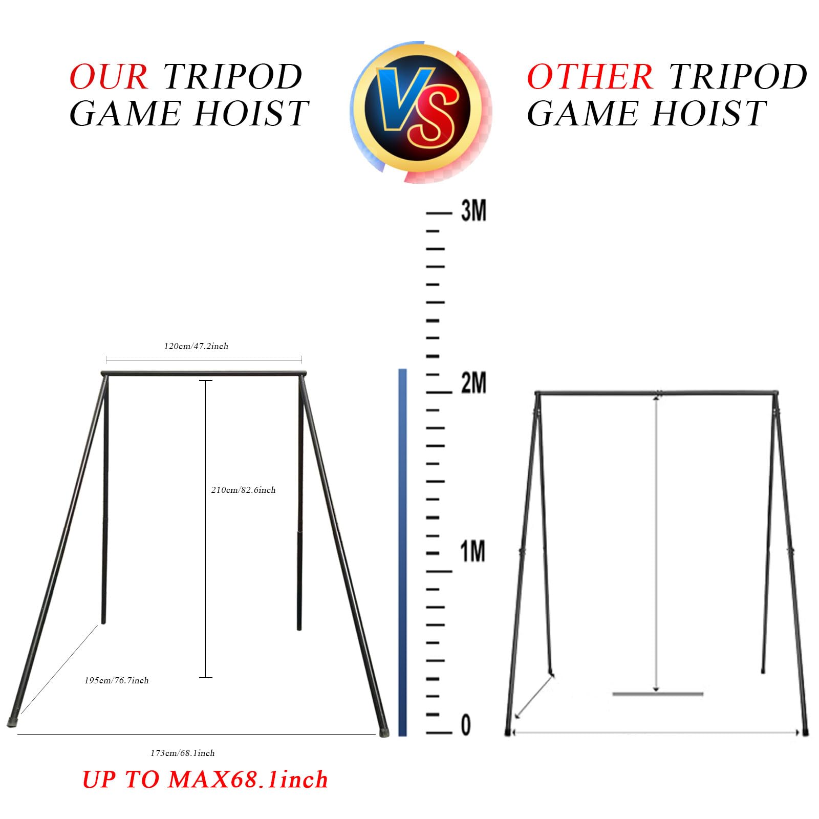 - UP TO 500IB - Deer game hanger features a robust structure, providing a stable and secure base for lifting and suspending heavy game. It can lift large prey, ensures long time durability and stability during use.