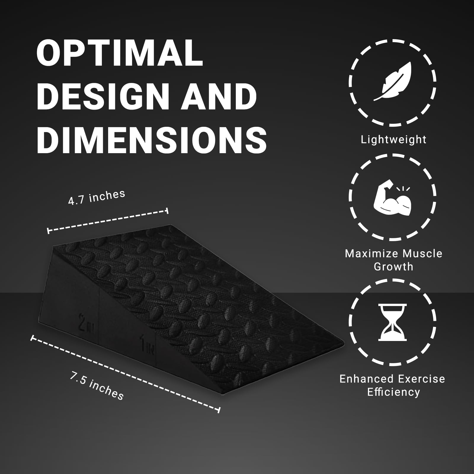 - ๐๐ฉ๐ญ๐ข๐ฆ๐๐ฅ ๐๐ข๐ณ๐ & ๐๐ฎ๐ฉ๐ฉ๐จ๐ซ๐ญ: Designed for optimal comfort and balance, each wedge for squats measures 13 inches (L) x 7.5 inches (W) x 4.7 inches (H), providing ample surface area for stability during intense workouts. Squat ramp carefully engineered incline supports various foot positions.