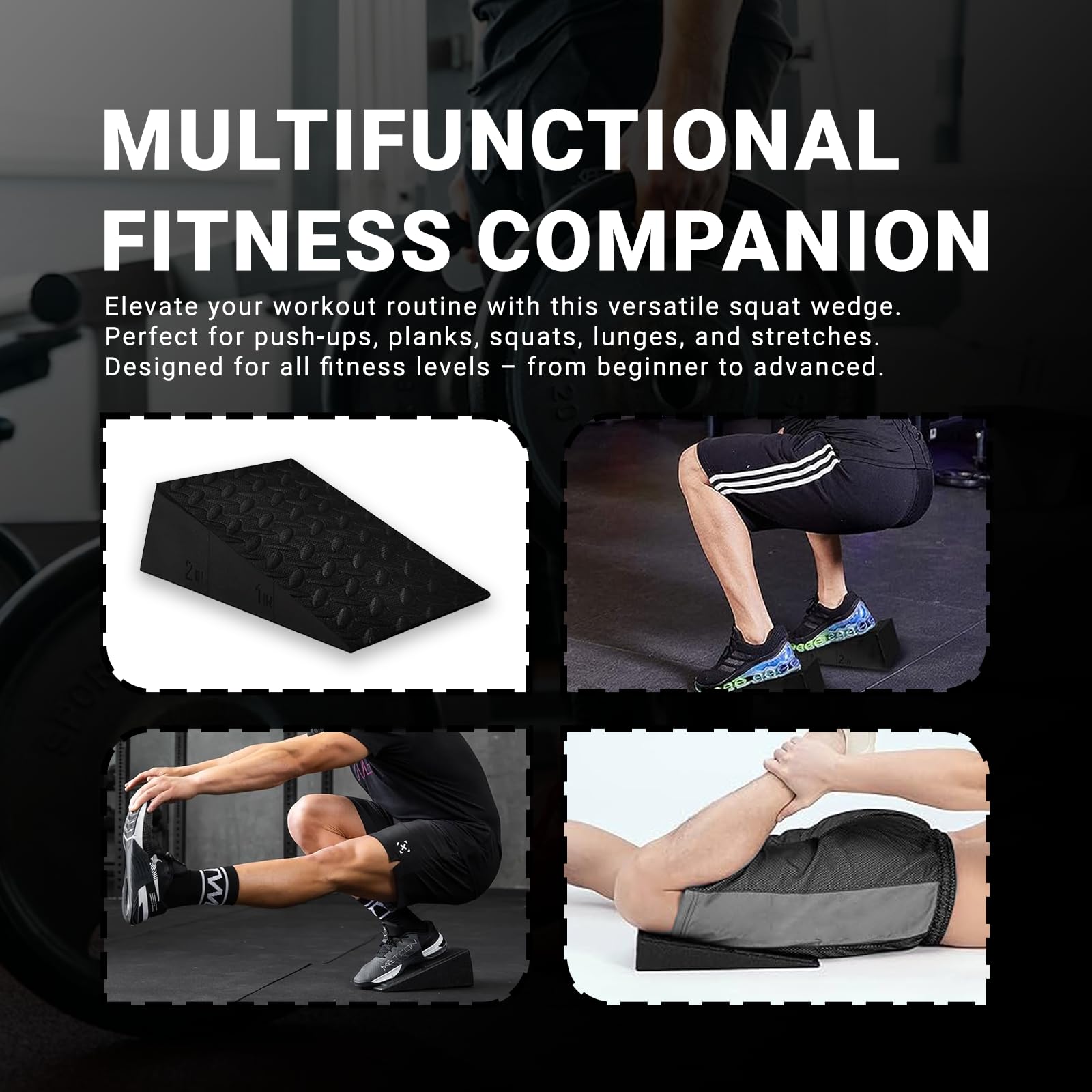- ๐๐ฅ๐๐ฏ๐๐ญ๐ ๐๐จ๐ฎ๐ซ ๐๐ช๐ฎ๐๐ญ ๐๐๐ซ๐๐จ๐ซ๐ฆ๐๐ง๐๐: Achieve deeper squats with proper posture using our squat wedges Whether you're a beginner or a seasoned athlete, these foot wedges for exercise help reduce strain on your knees, ankles, and lower back, allowing for a more comfortable and effective squat.