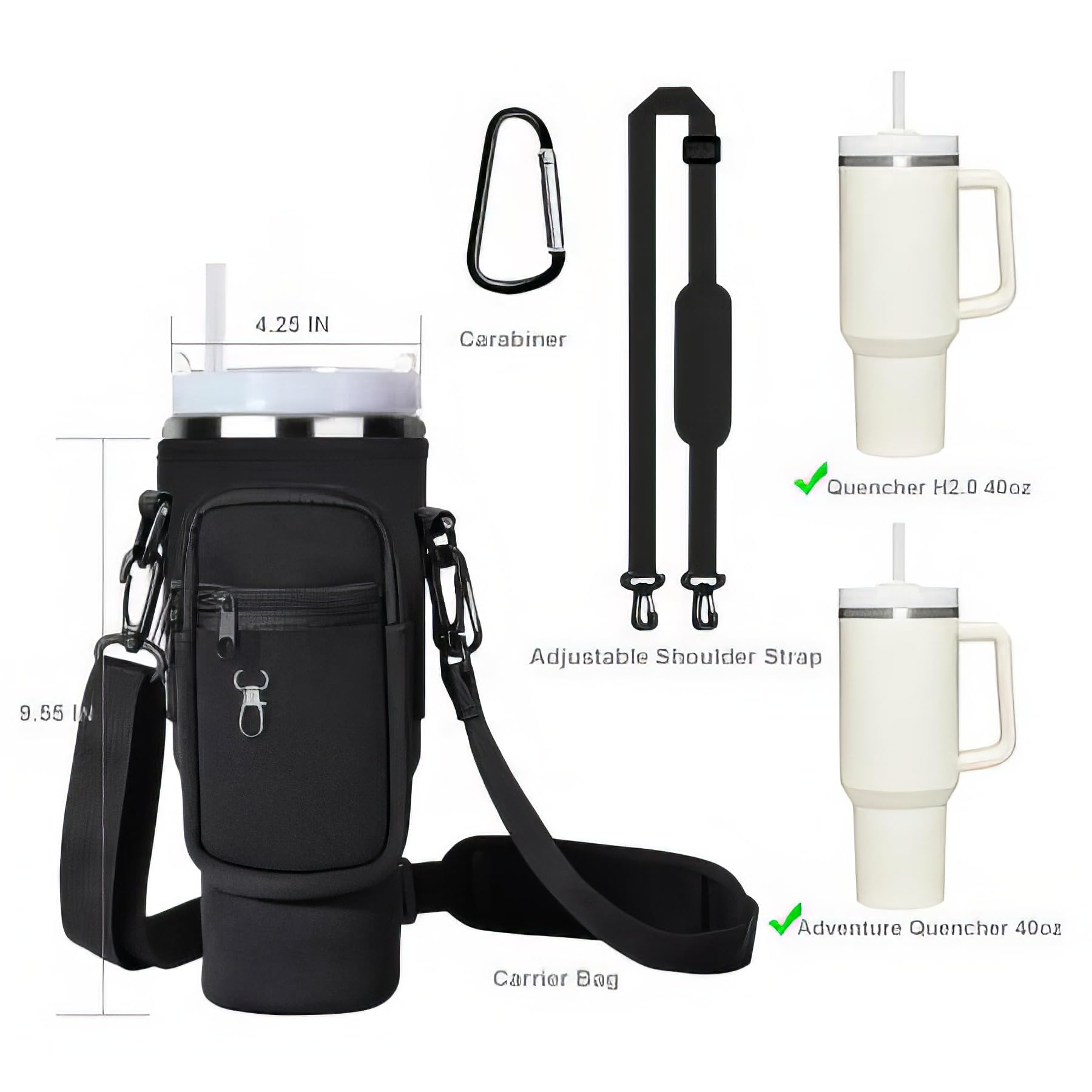 Generic Water Bottle Travel Carrier for 40oz Stanley Cup with Strap and Caribiner (Purple)