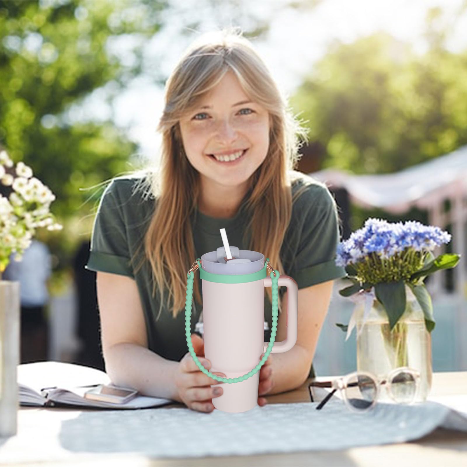 Genleas Silicone Water Bottle Handle - Holder with Strap - Water Bottle Lanyard-Water Bottle Sling - Specifically Designed for Stanley Quencher - Also Fit for Most 8-40oz Bottles