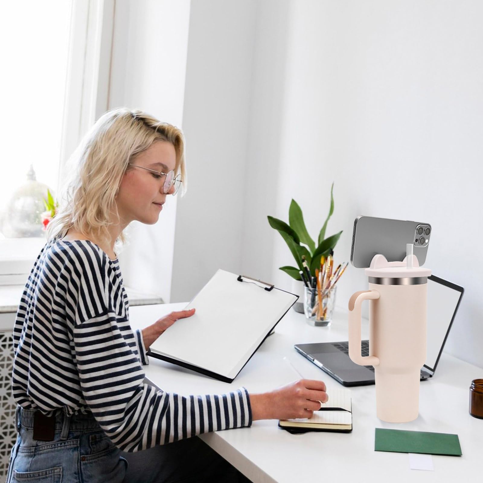 Genleas Tumbler Lids with Phone Shelf for Stanley cups 40 & 64 oz, Silicone Replacement Lids with Cell Phone Holder for Stanley Quencher H2.0 40 oz & 64 oz, Tumbler Cup Accessories for Stanley, Pink