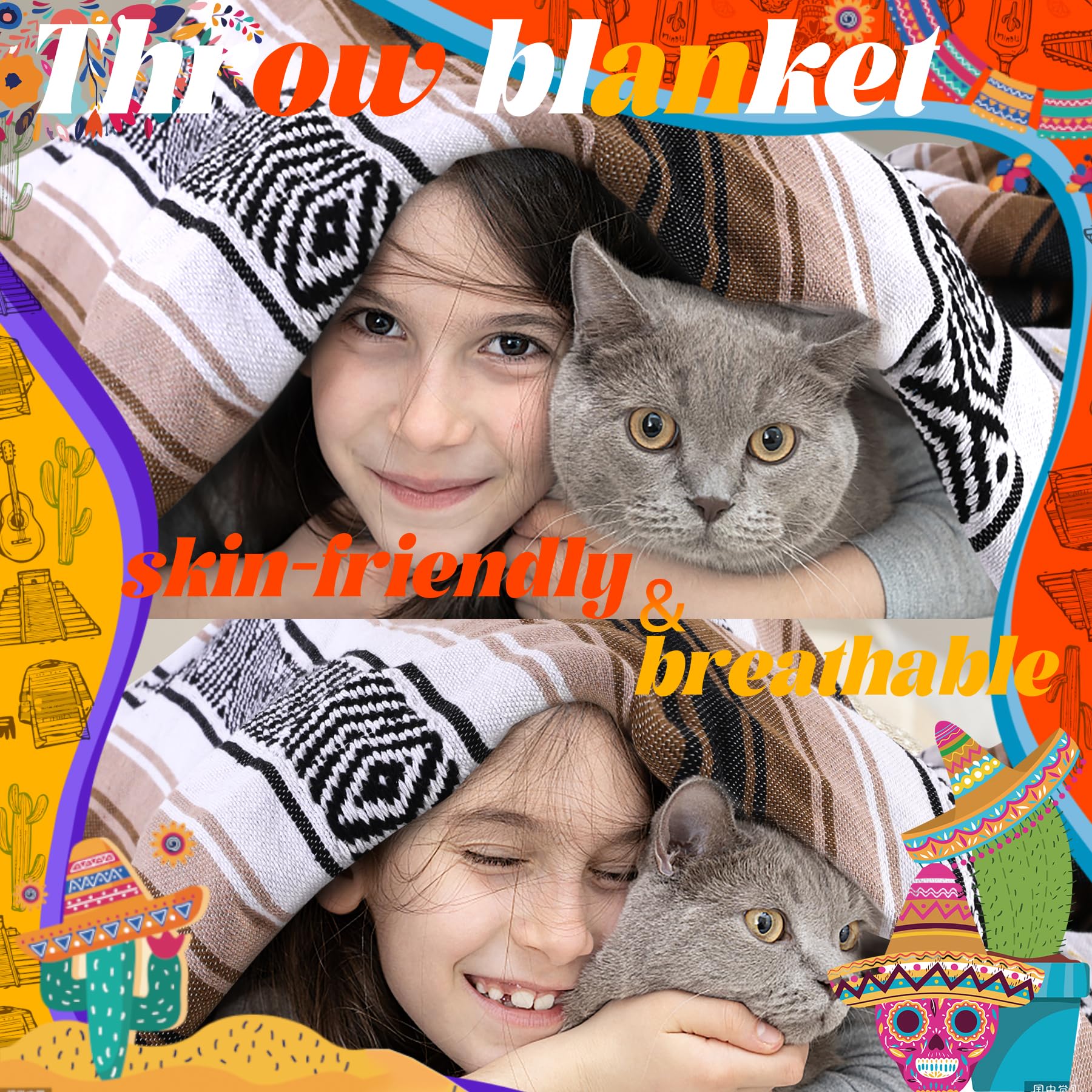 - [Good Quality]: Our Mexican blankets are made from 70%Cotton30%Polyester to ensure excellent quality and softness. Our Mexican blanket is built to last! It's made from high-quality materials that can withstand multiple washes without losing its vibrant colors or intricate patterns. The color remains vibrant after use, just like new!