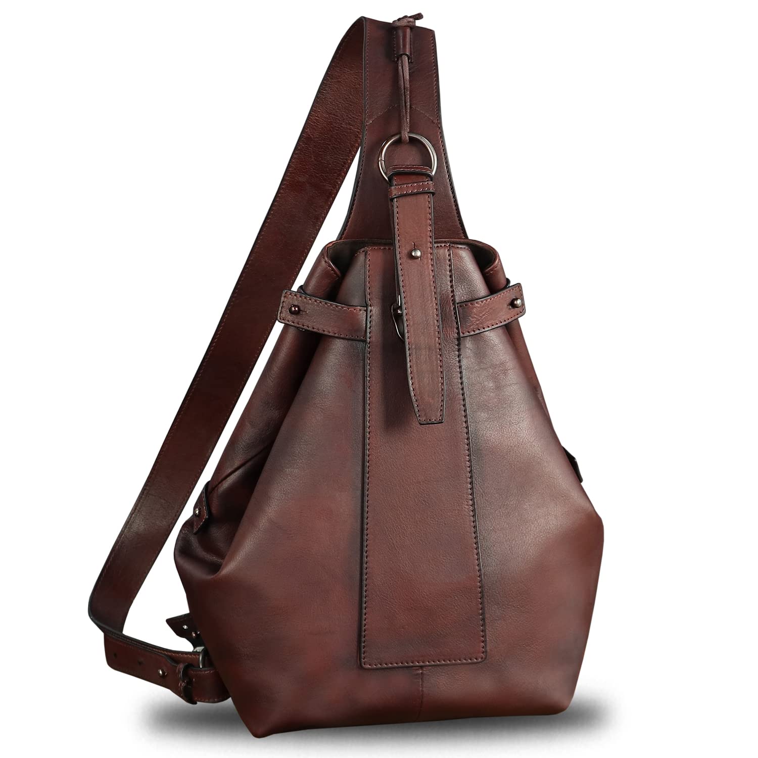 Genuine Leather Sling Bag for Men and Women Large Real Leather Sling Backpack Shoulder Crossbody Bag Chest Bags (Coffee)